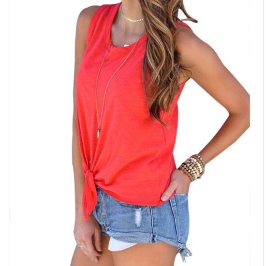 カジュアルな前結び ノースリーブシャツ ソリッドカラー 22【A20】