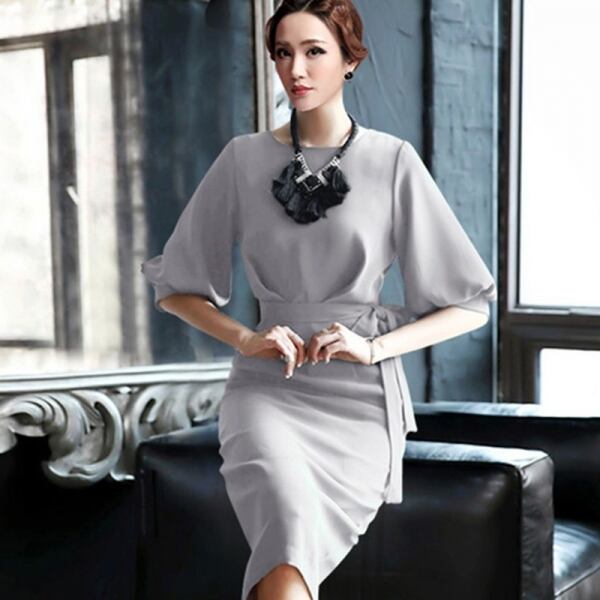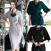ボリューム袖ウエストリボンタイトワンピースのご紹介です。シンプルで落ち着いたデザインのタイトワンピースは上品でウエストリボンで美シルエット。トレンドのボリューム袖は華奢な女らしさを演出します。パールや大ぶりアクセサリー、ヒールを合わせれば二次会や結婚式に。お呼ばれなどのきちんとシーンやパーティ、通勤などのオフィスコーデにもオススメの1着です。