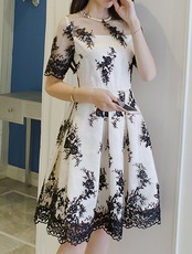 ふんわり上品なお嬢様 シースルーフラワーレースパーティードレス