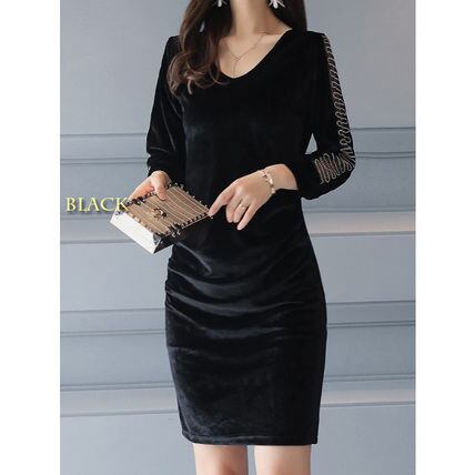 結婚式などのお呼ばれに Vネックタイトワンピースドレス