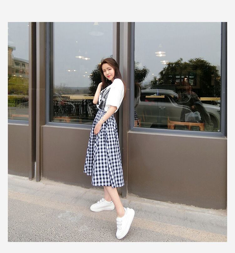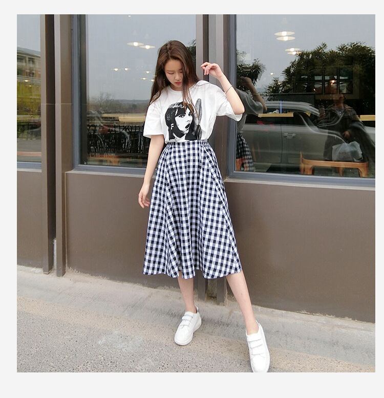ギンガムチェックミモレ丈フレアスカート Aライン ミディアム カジュアルガーリー 302