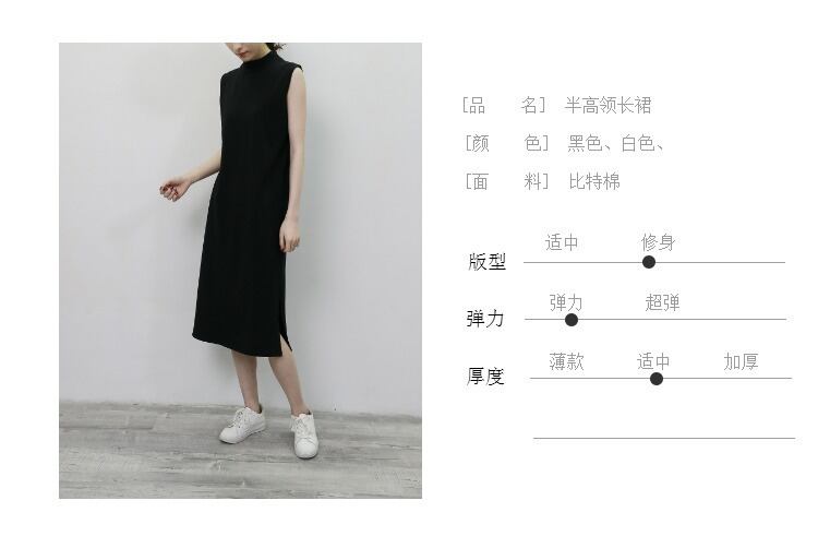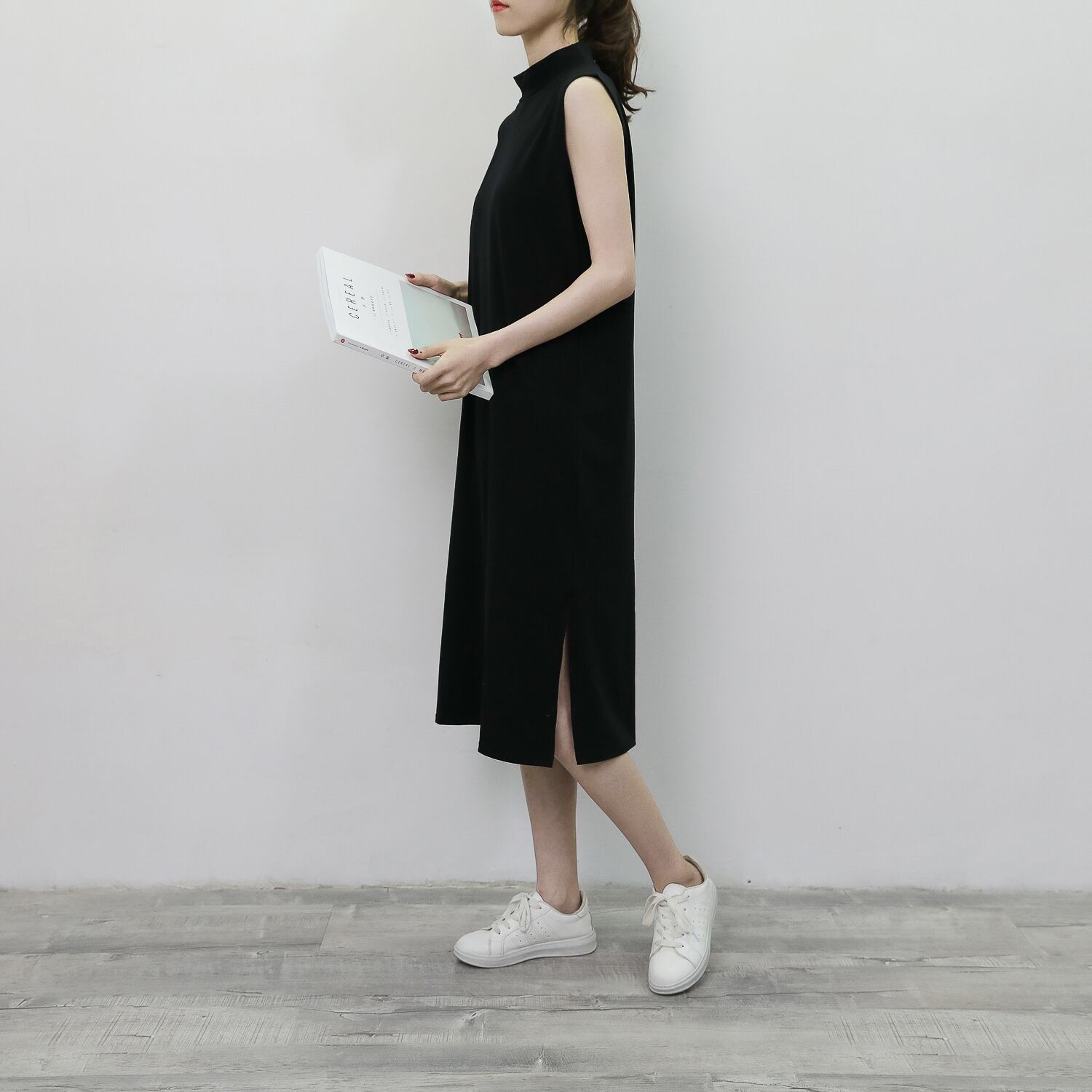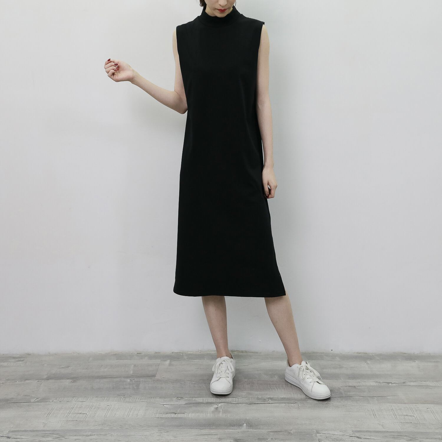 シンプルノースリーブハイネックタイトワンピース スリット フィット 膝丈 306