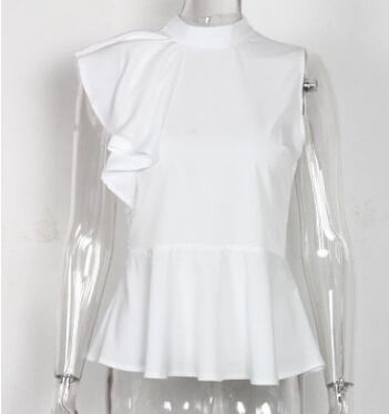 お上品系ボトルネックアシンメトリフレアノースリーブすそフリルトップス 20