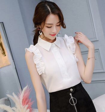清楚かわいい系ふりふりフリル袖ノースリーブカッター シャツ 101