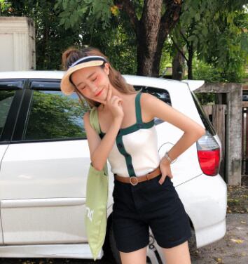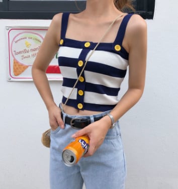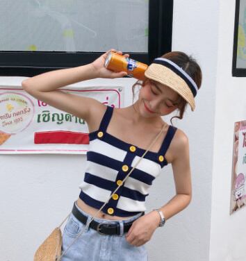 キュートカジュアル系ボタンポイントキャミ型ニットミニトップス 11