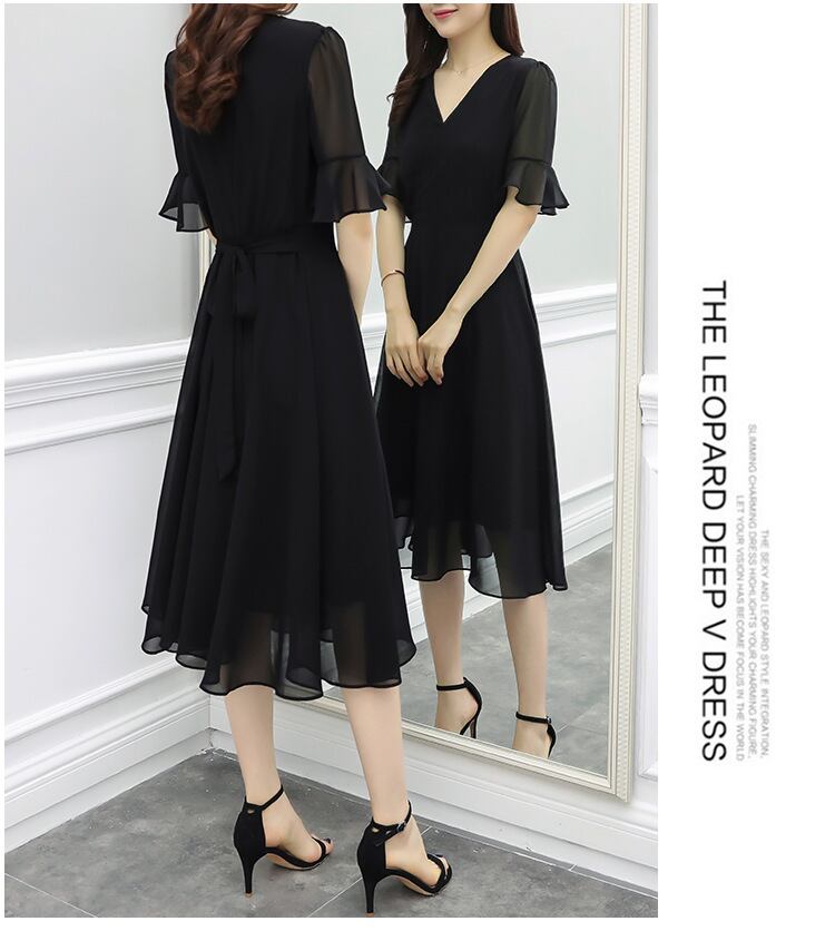 シフォンフリルスリーブフレアワンピース フェミニン オフィスカジュアル 318