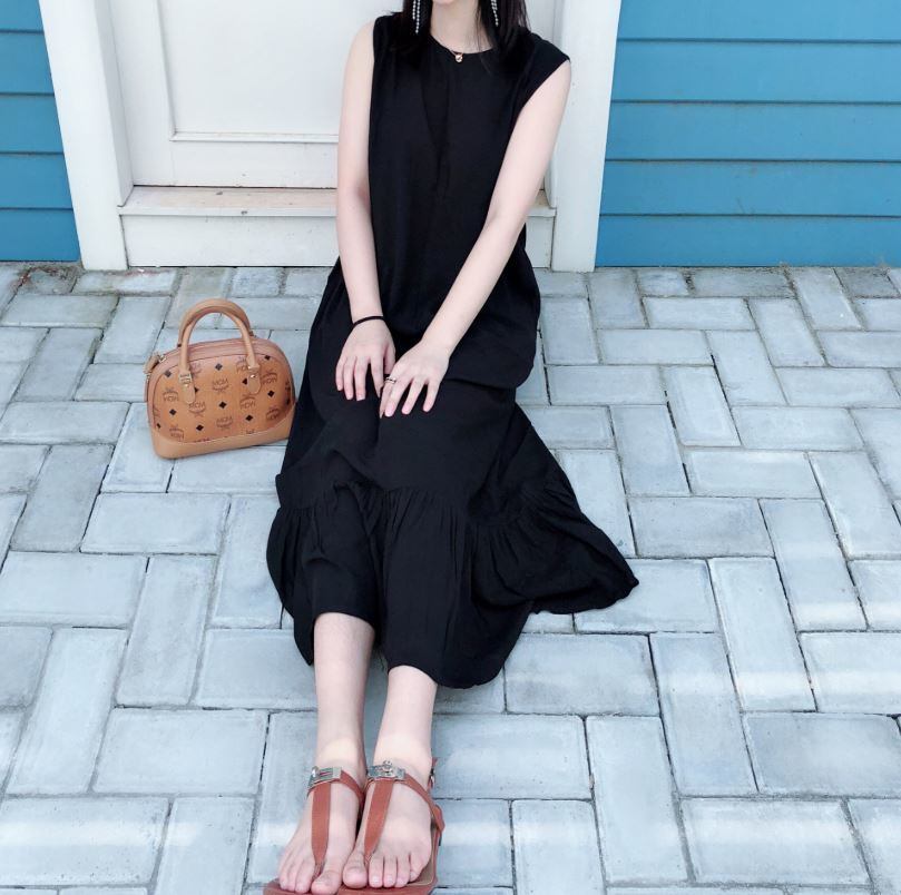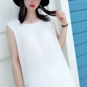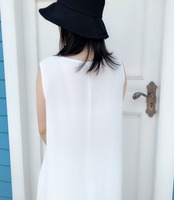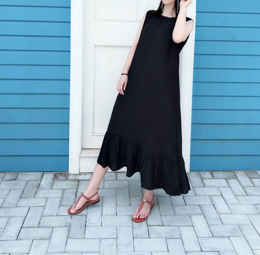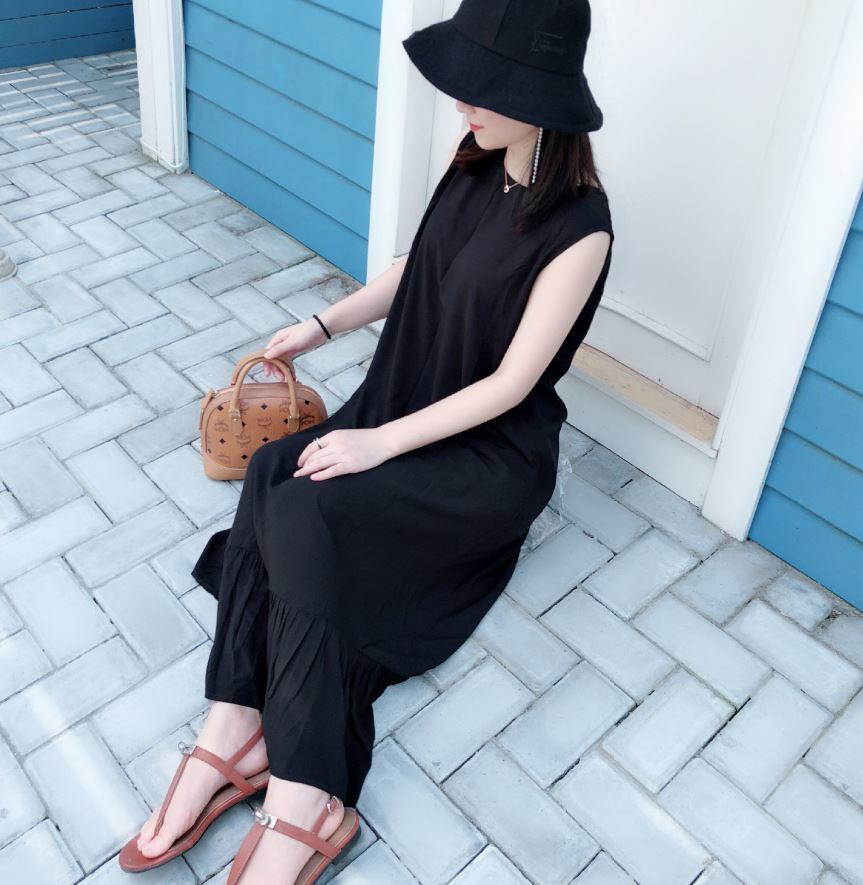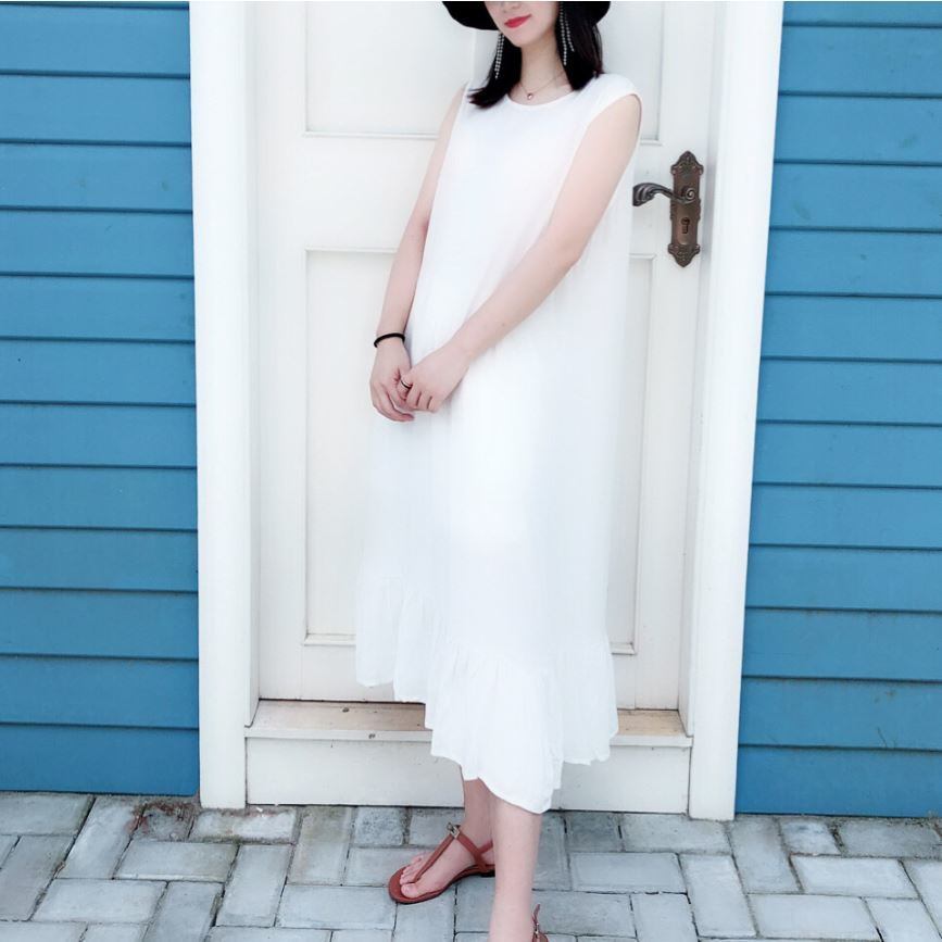 2018夏の新作 カジュアルなソリッドカラーのラウンドネック ひざ下丈ワンピース 501