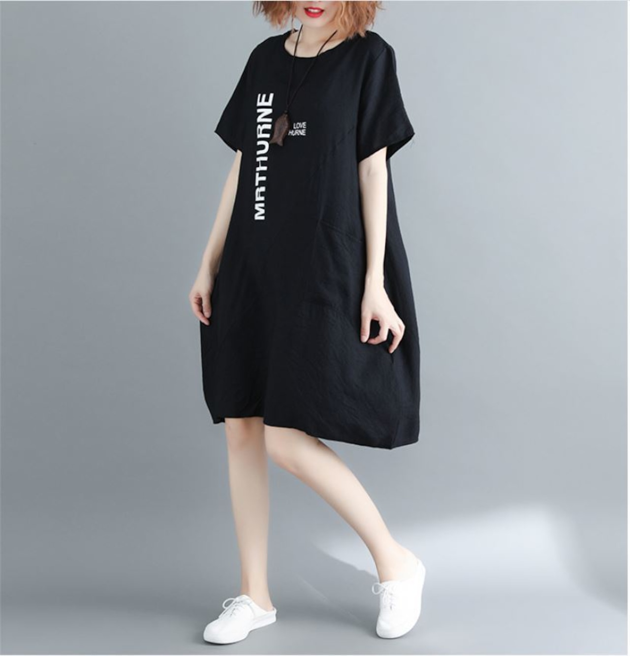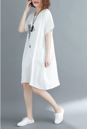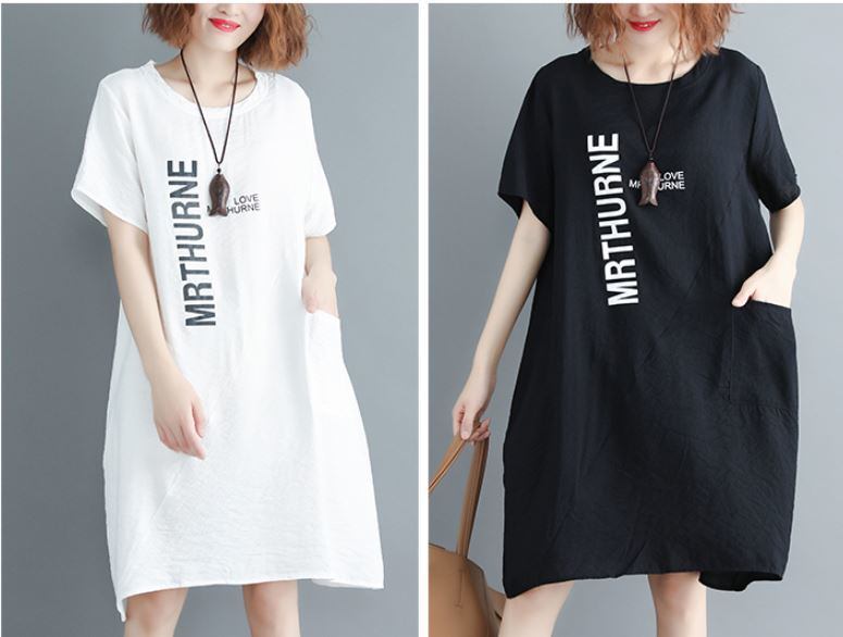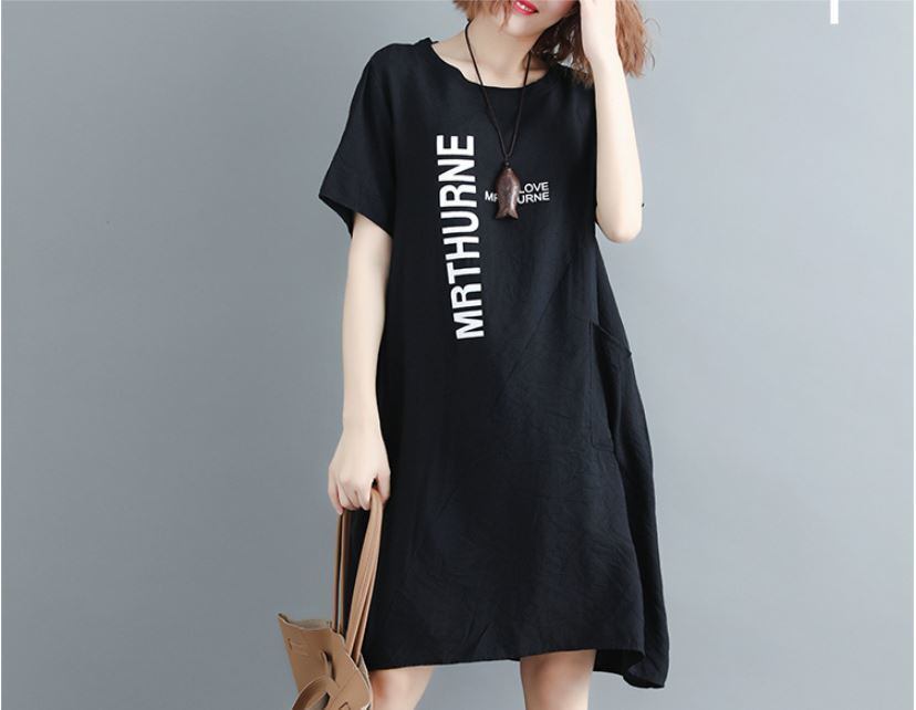 2018夏の新作 半袖 プリント ロングTシャツ ワンピース 502