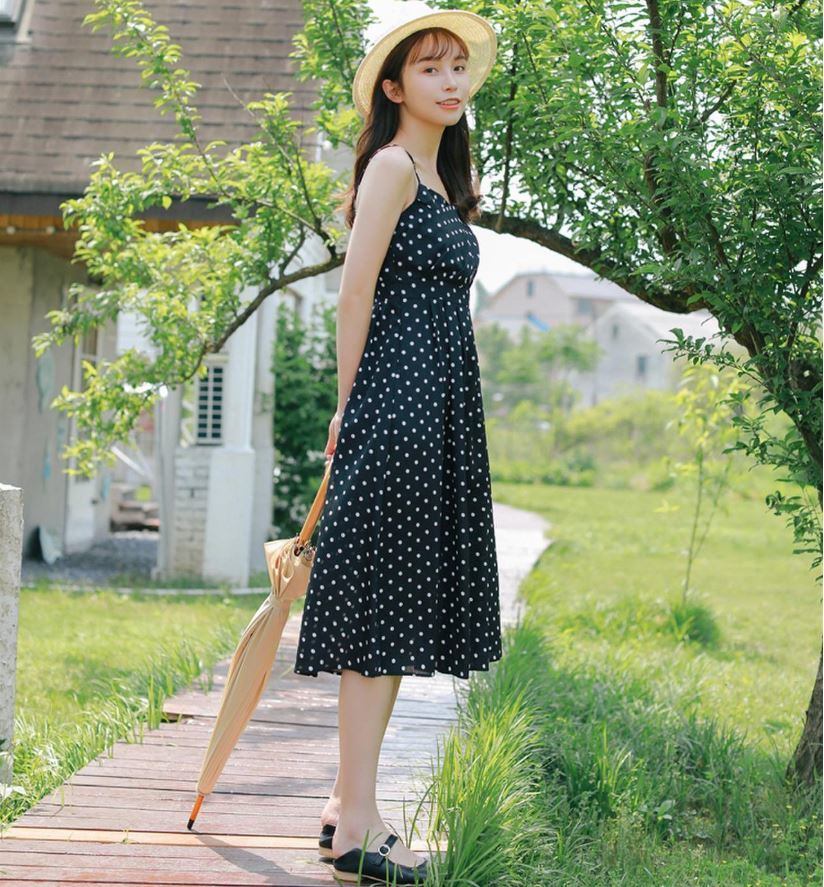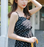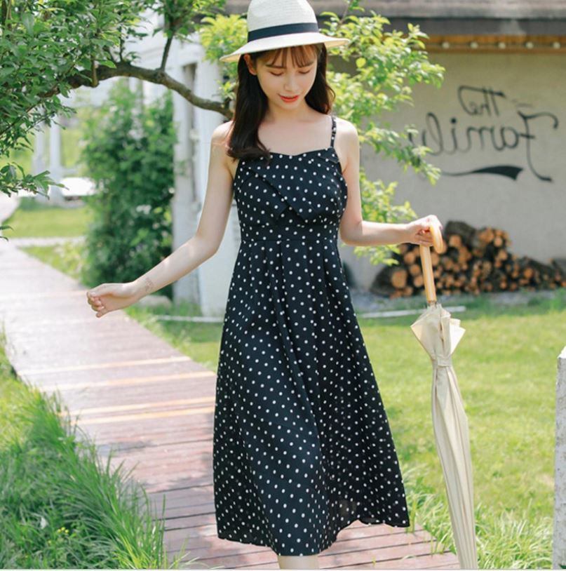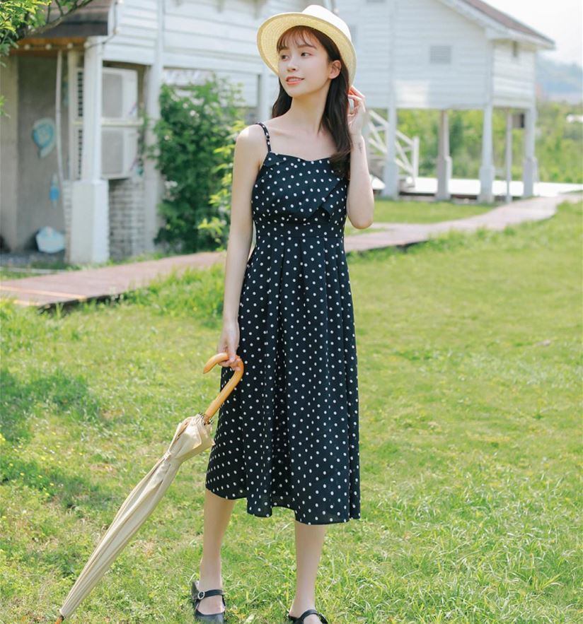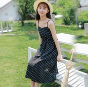 2018夏の新作 ラクロスウエストのロングスカート 水玉スリングドレス 507