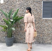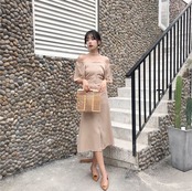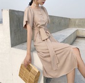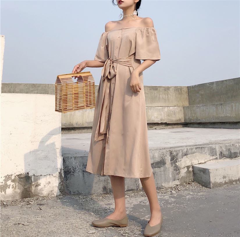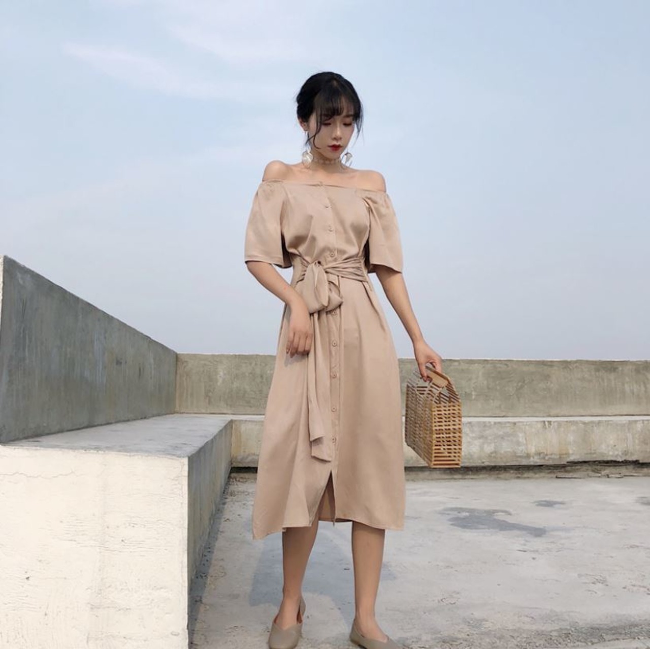 エレガントなドレス スリムな背中 ランタン袖 ワイドスカート ロングスカートワンピース 512