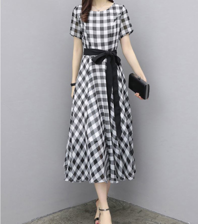 新しいチェック柄のシフォンスカート スリムなウエスト フレアスカートのレトロなワンピース 518