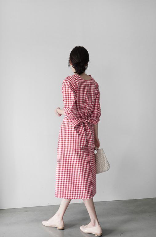 コットンとリネン Vネック ルーズフィット5分袖フレアスカート」ワンピース 519