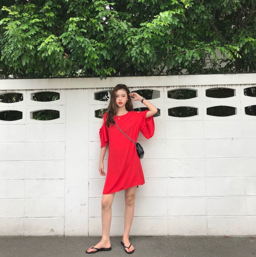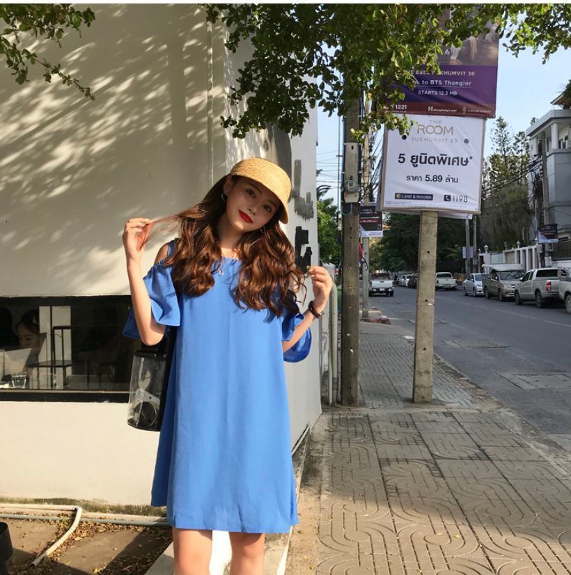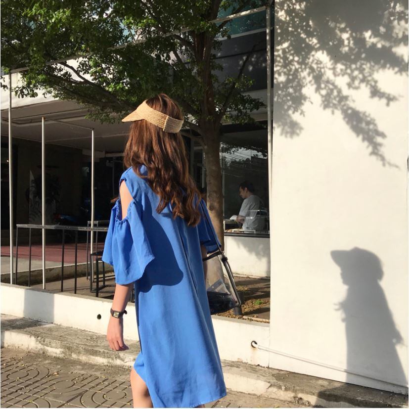 無地 半袖 オフショルダー ショートスカート ワンピース 526