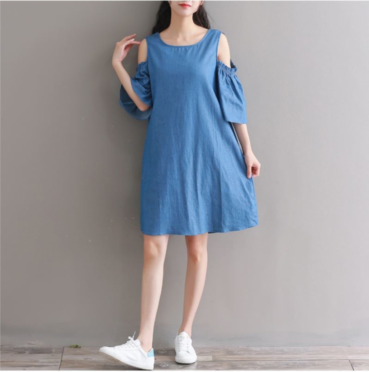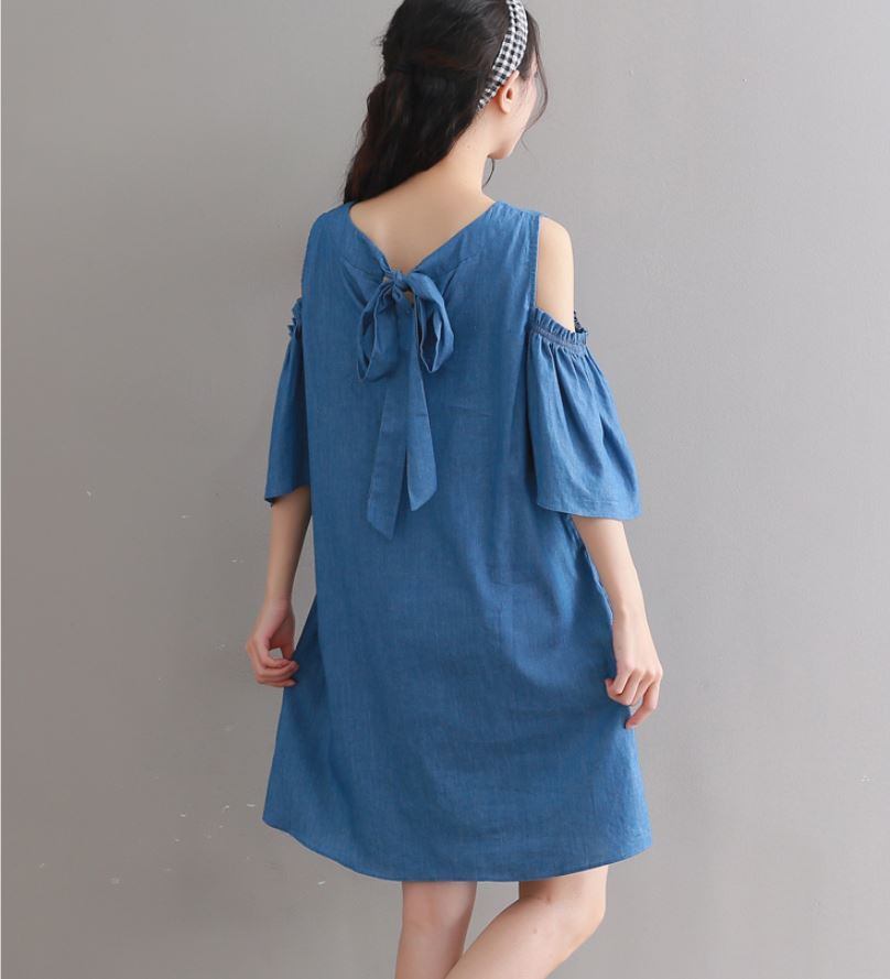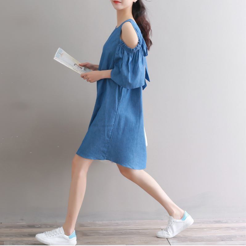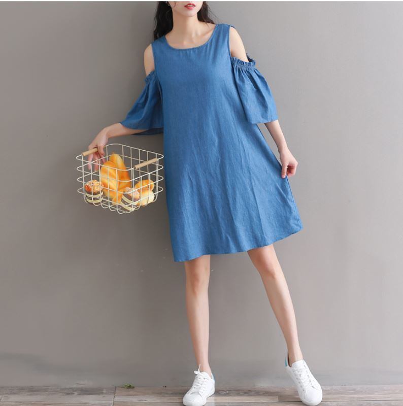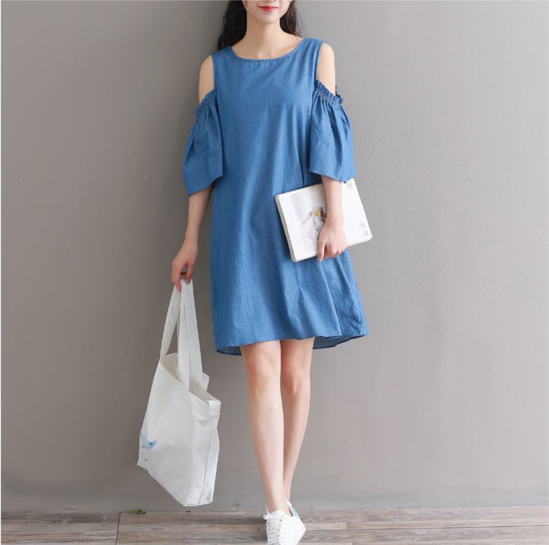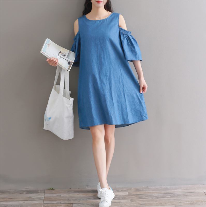 ゆったりしたデニムの ワイドなショートスカート ストラップレス オフショウルダーワンピース 527