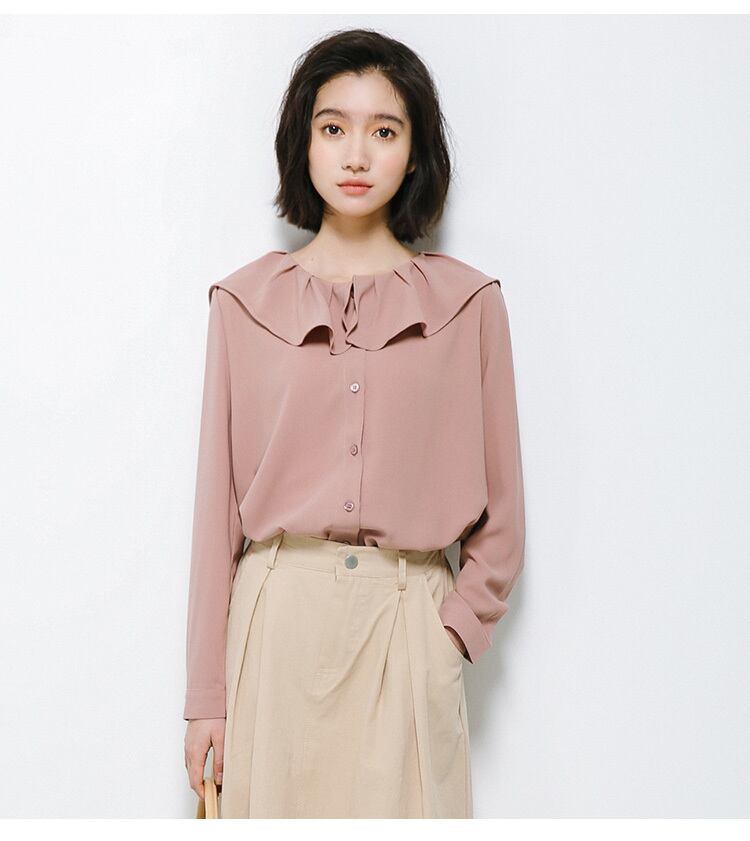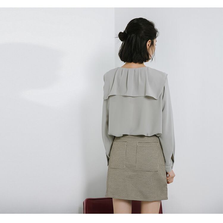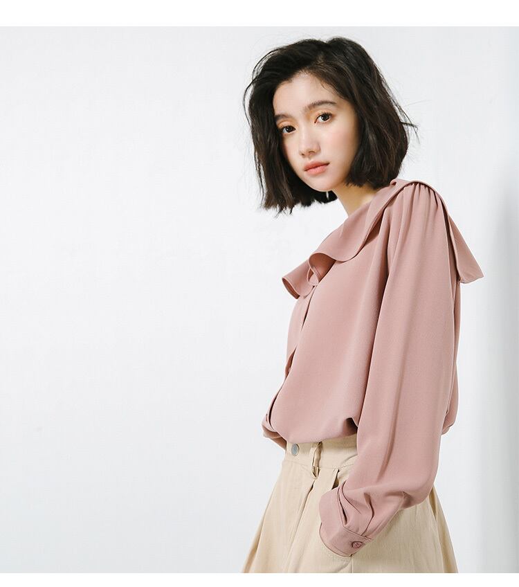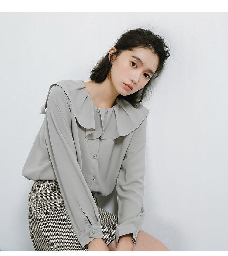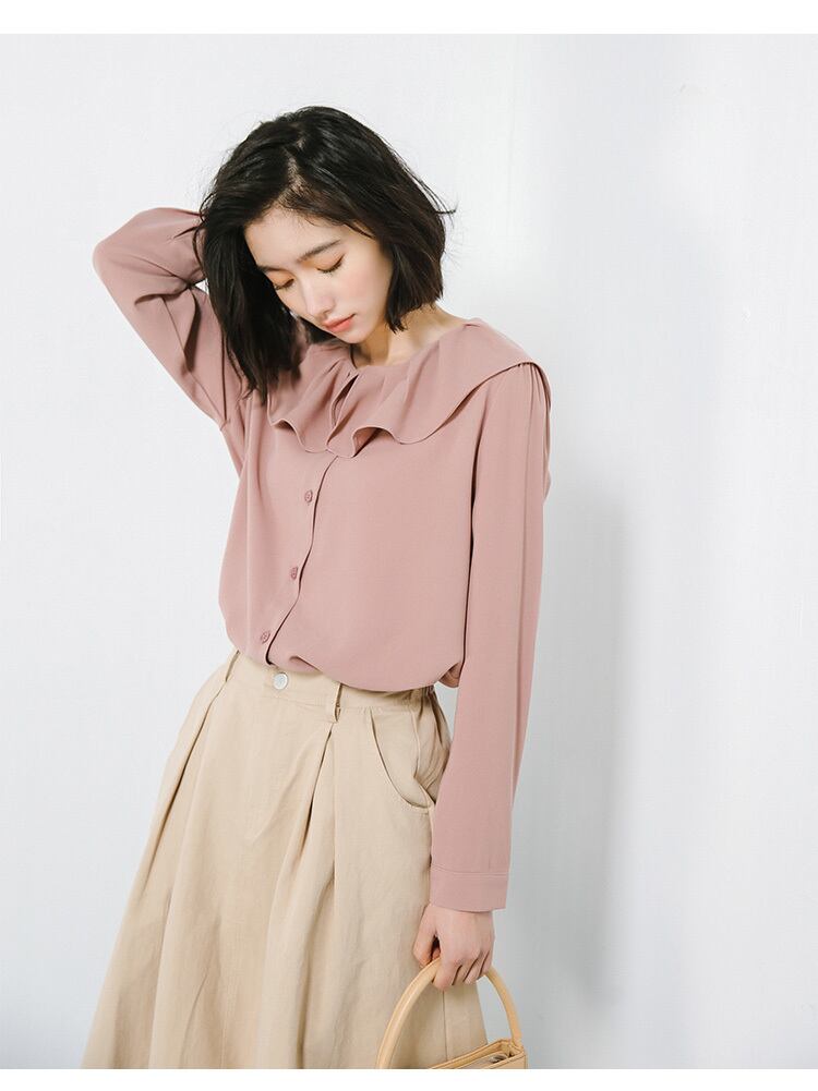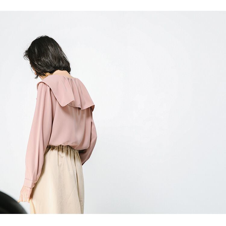 セーラーカラーフリル襟とろみブラウス オフィスカジュアル シンプル 331