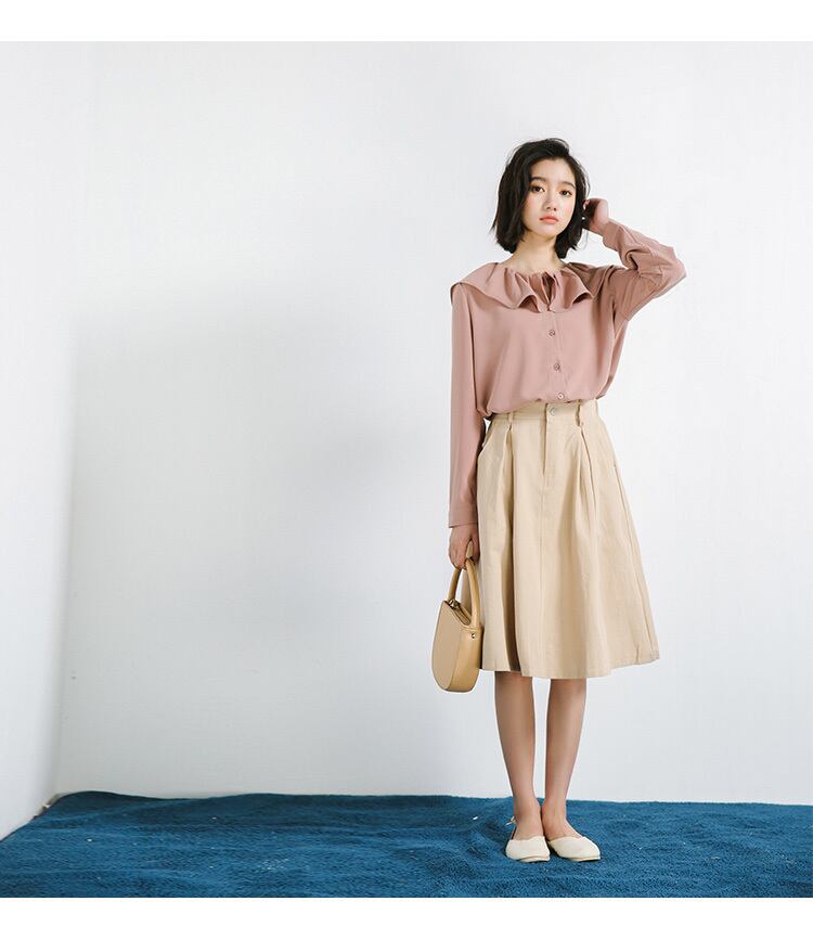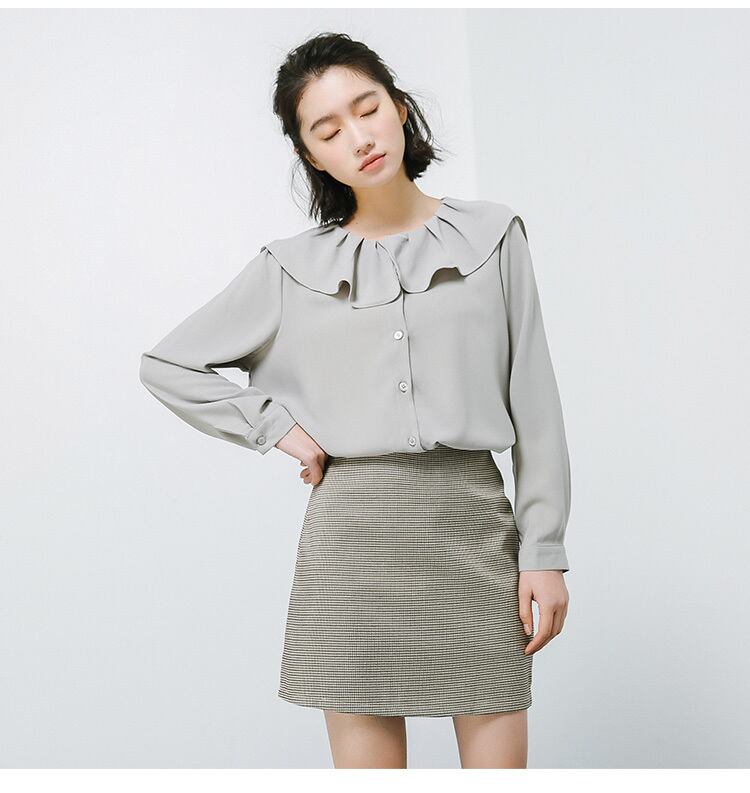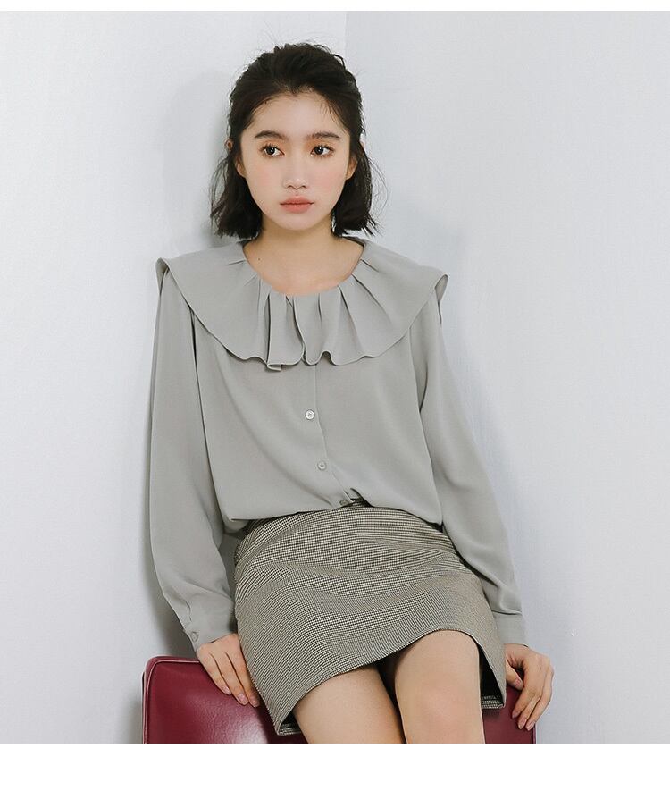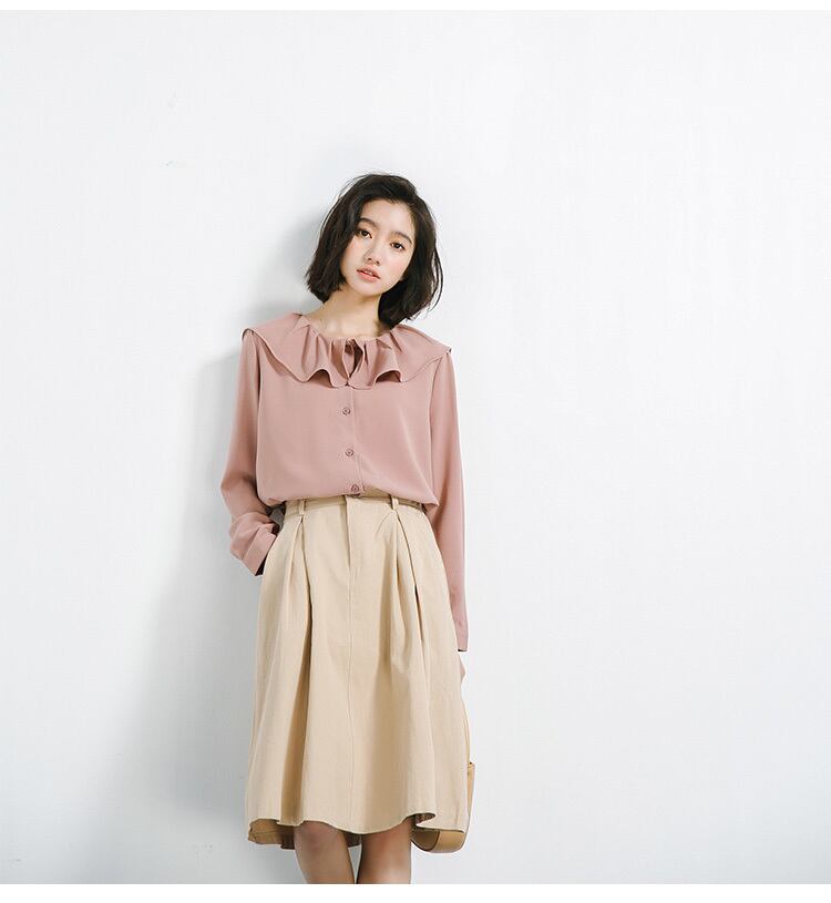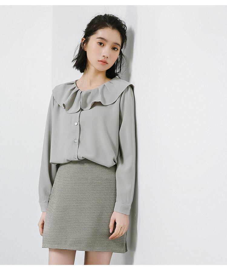セーラーカラーフリル襟とろみブラウス オフィスカジュアル シンプル 331