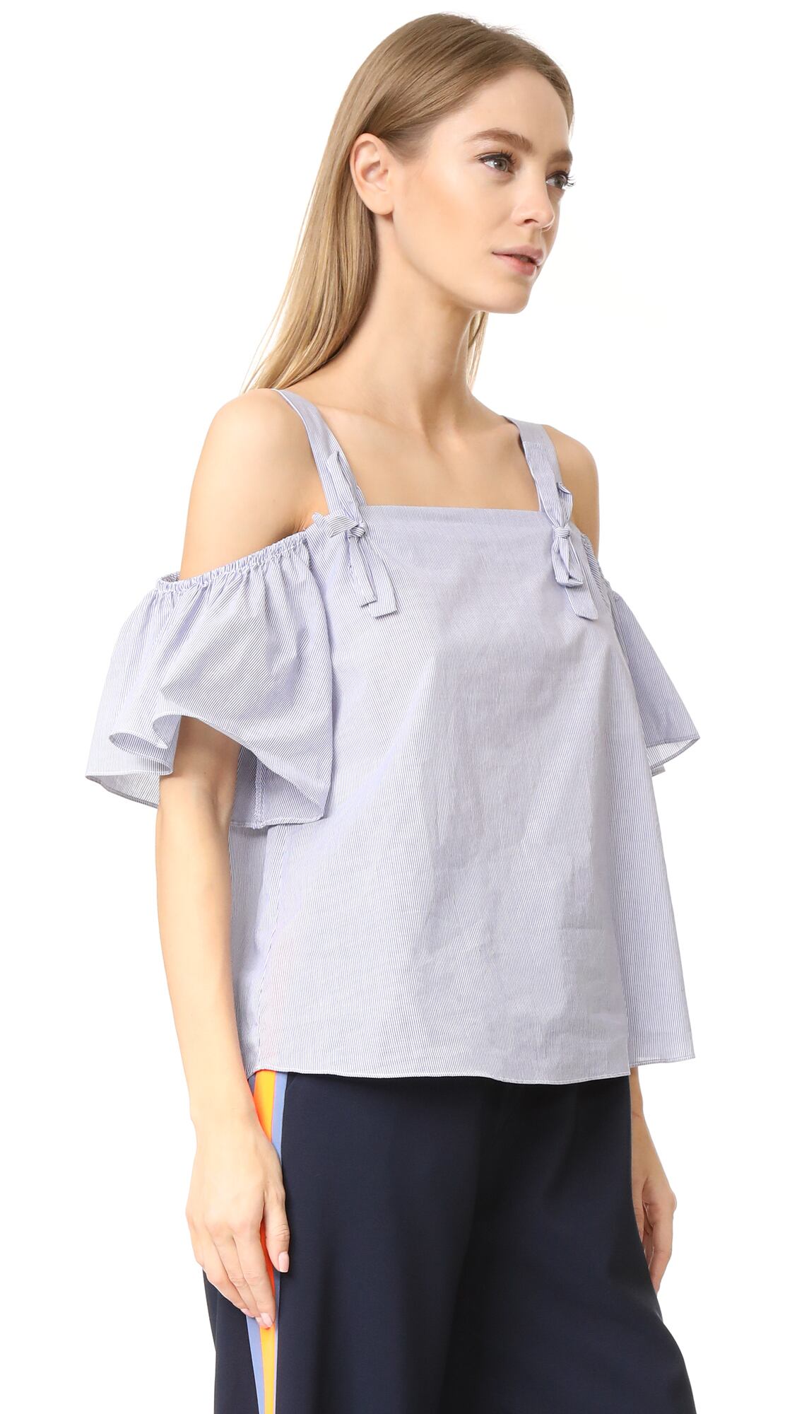 2018年夏新作 ピンストライプオフショルダーリボンブラウス ガーリー 341-3【A3】