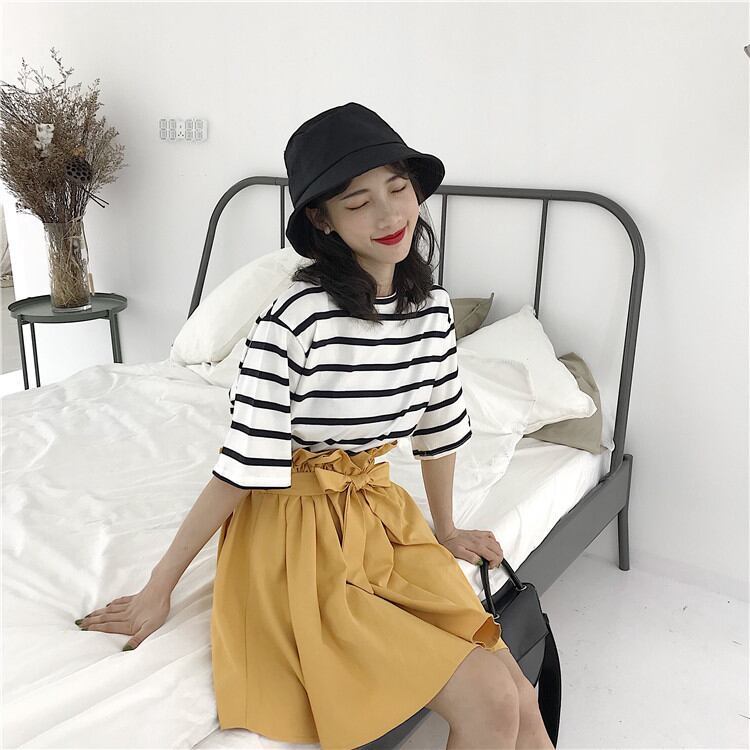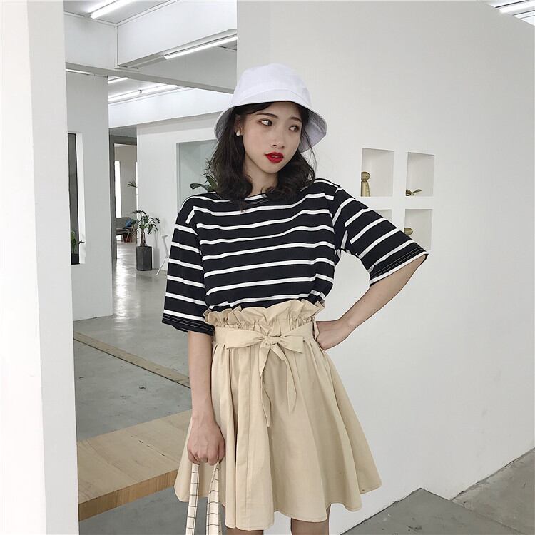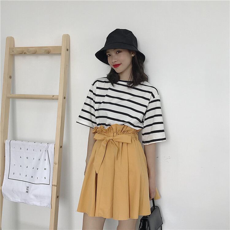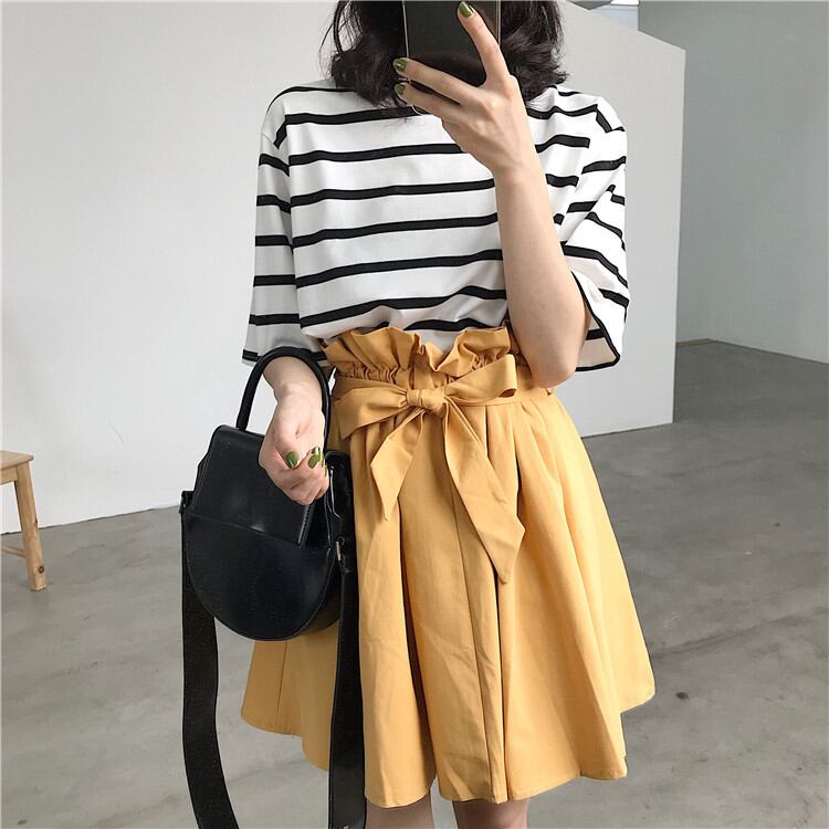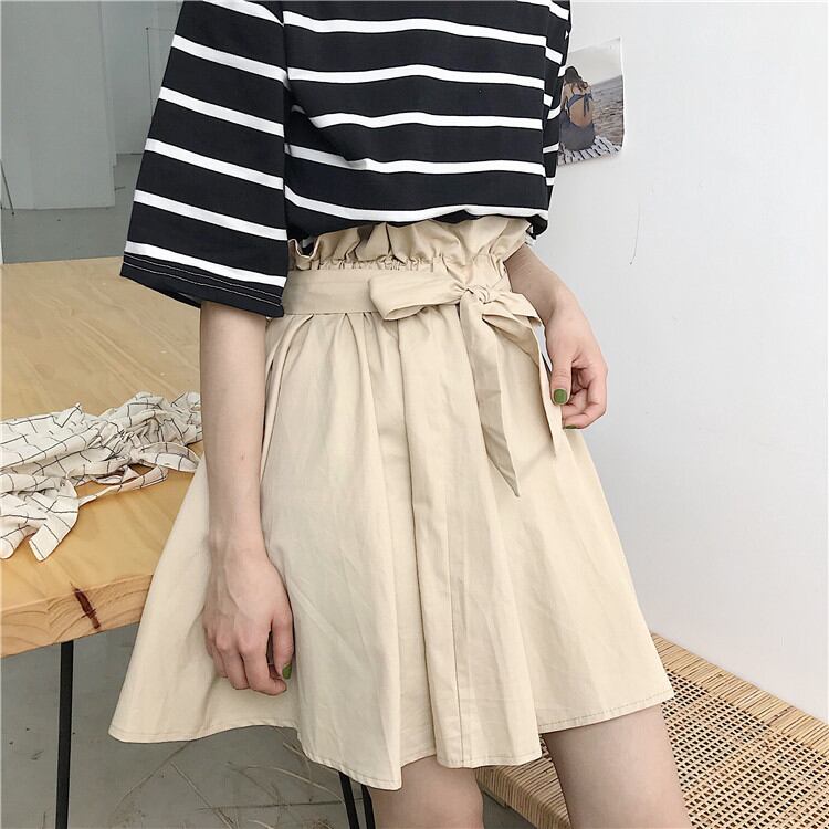 リボン使いウエストシャーリングフレアギャザースカート オフィスカジュアル 344
