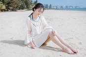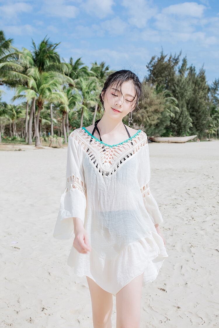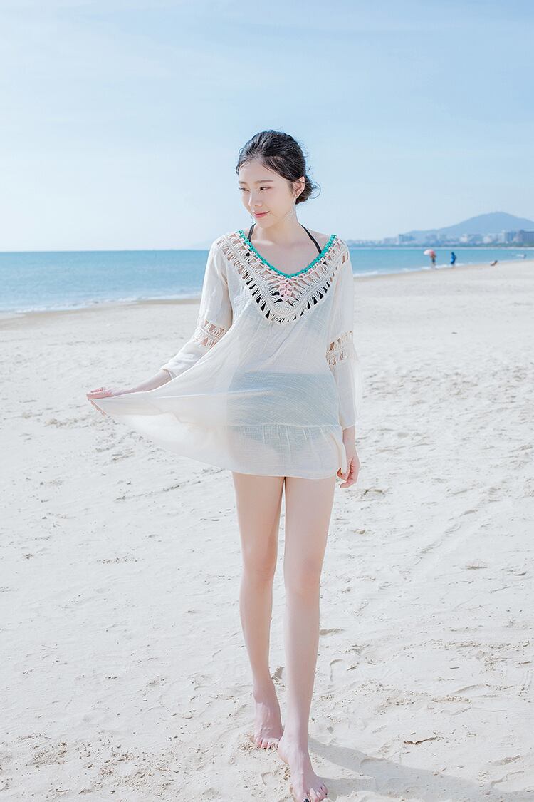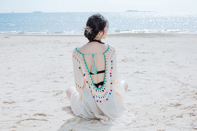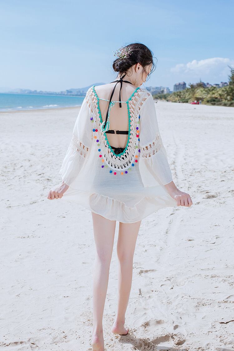 ポンポンかぎ針編みチュニックワンピース ビーチウェア リゾート 349