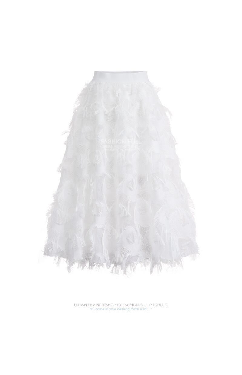 ガーリーなミモレ丈フェザーレースギャザースカート 356