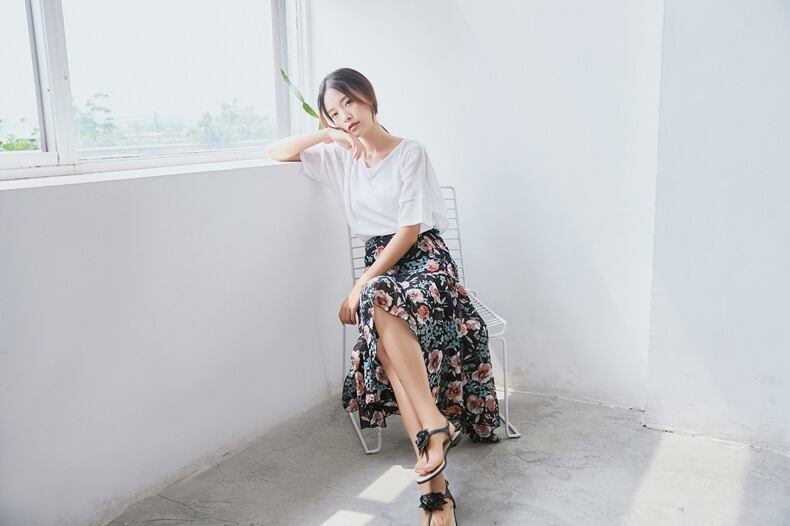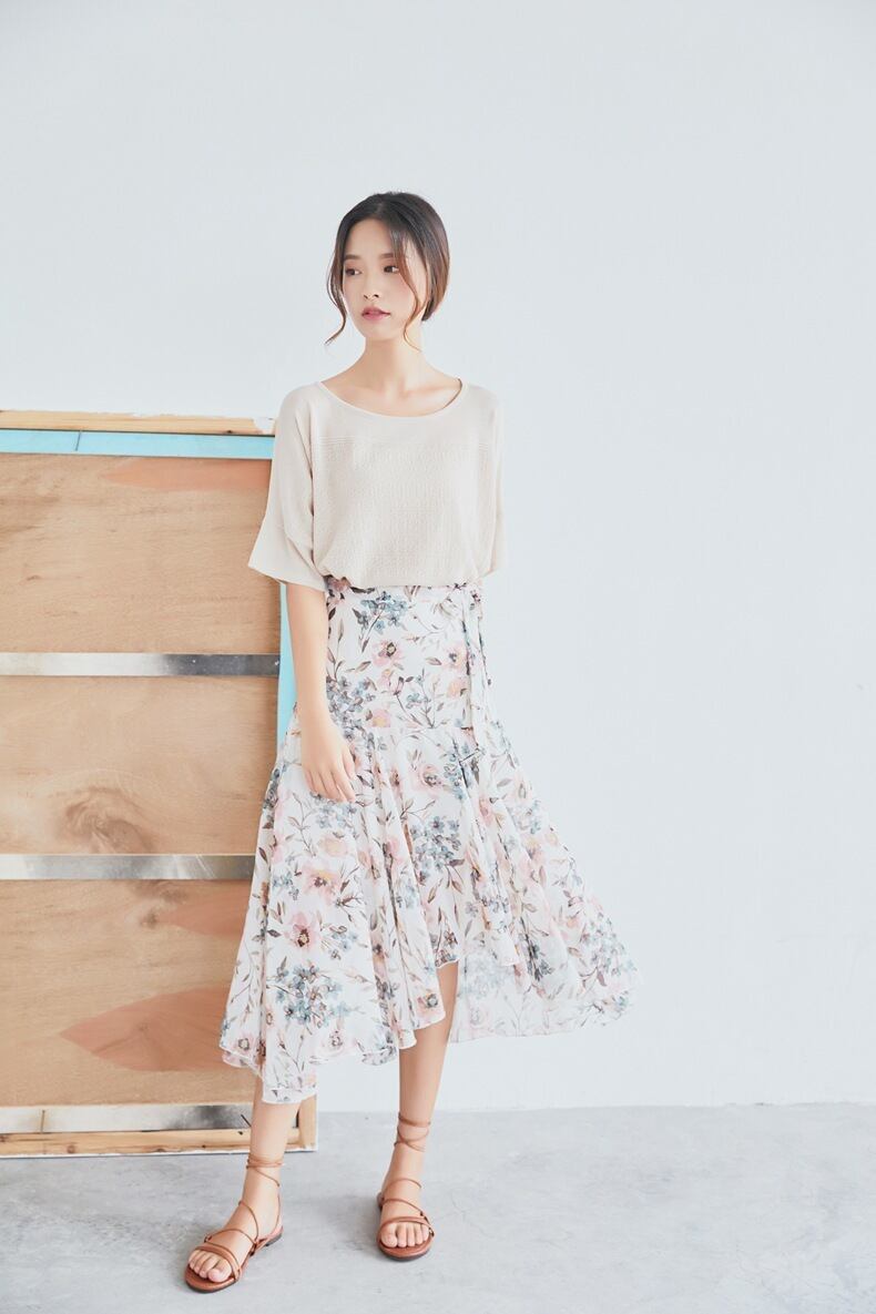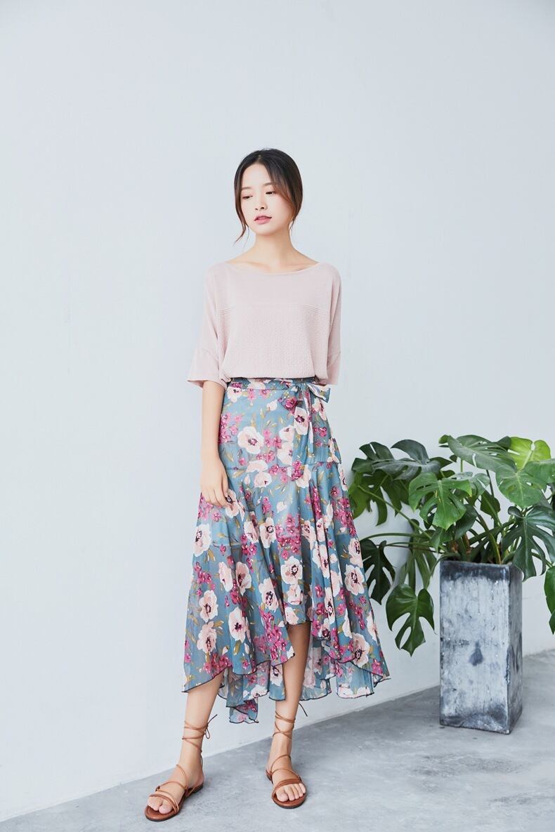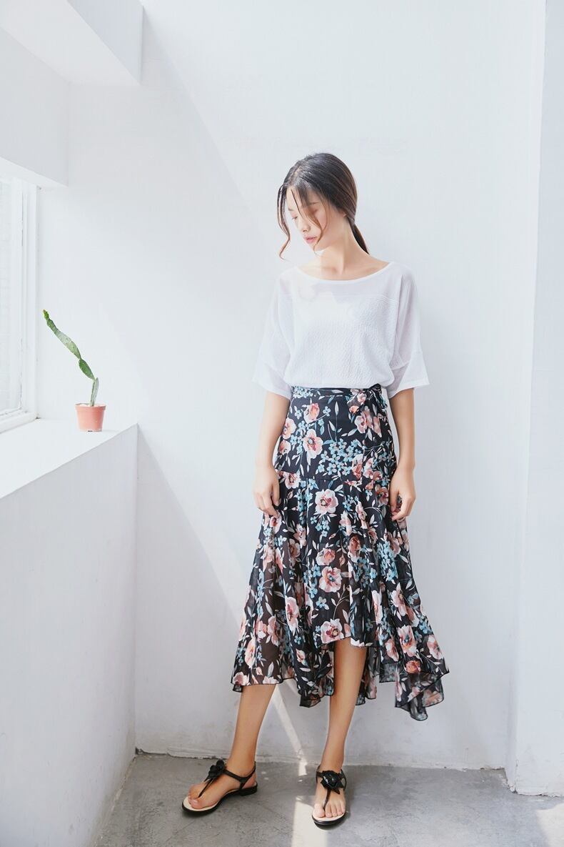 レディなフィッシュテールデザインローズ柄フリルスカート 358