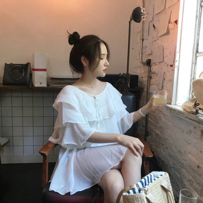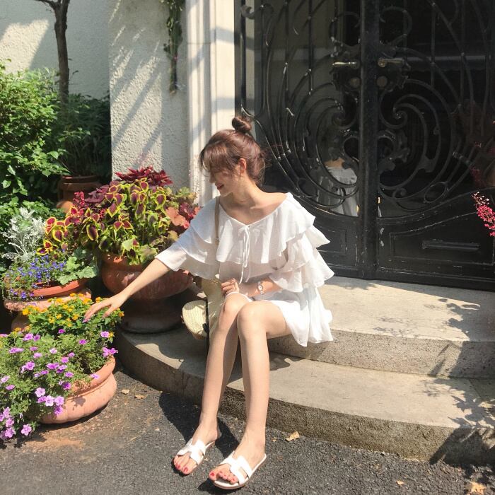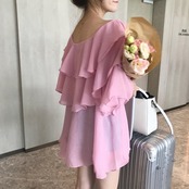 2018夏新作 キュートなラッフルフリルワンピース リゾート 369