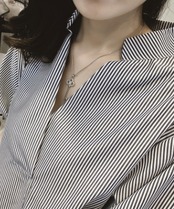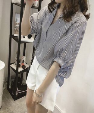 大人かわいい系パフスリーブ 5分袖Vネック ストライプシャツ803