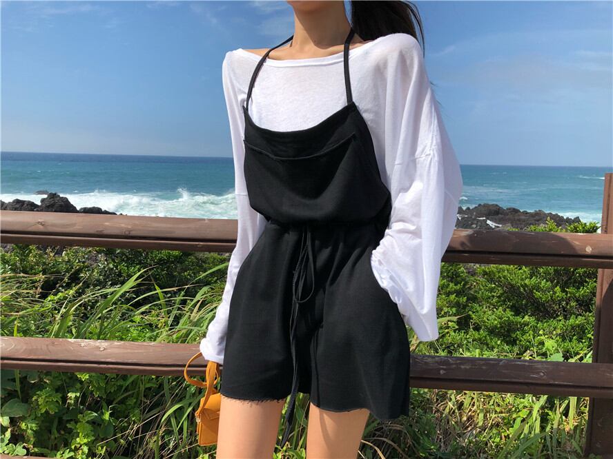ラフな切りっぱなしスウェットオールインワン リラックスカジュアル 375