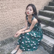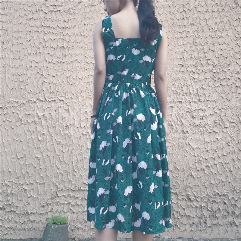 ワンピース ミモレ丈 レトロ フラワープリント ノースリーブ レディースファッション トレンド 夏 エレガント 上品 大人かわいい お出かけ お呼ばれ デート リゾート 392