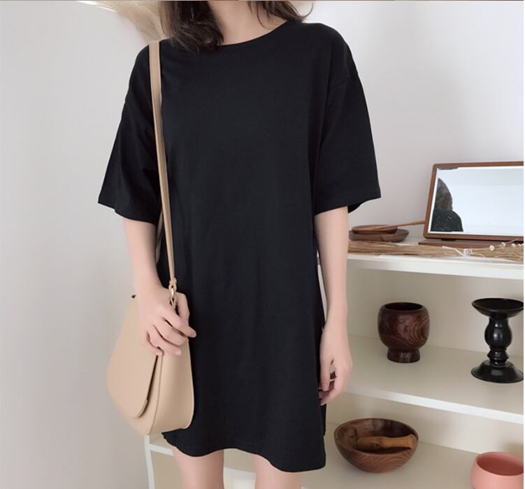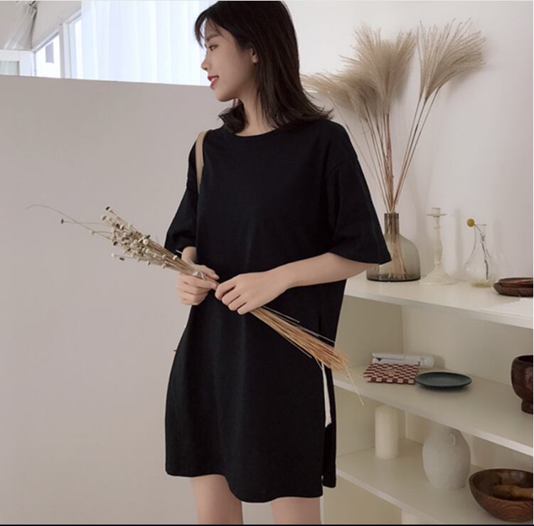 半袖ワンピース モノトーン ゆったり ゆるシルエット らくちん オーバーサイズ ラウンドネック レディースファッション トレンド 夏 シンプル カジュアル 大人かわいい お出かけ お呼ばれ 着回し 396