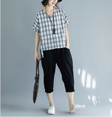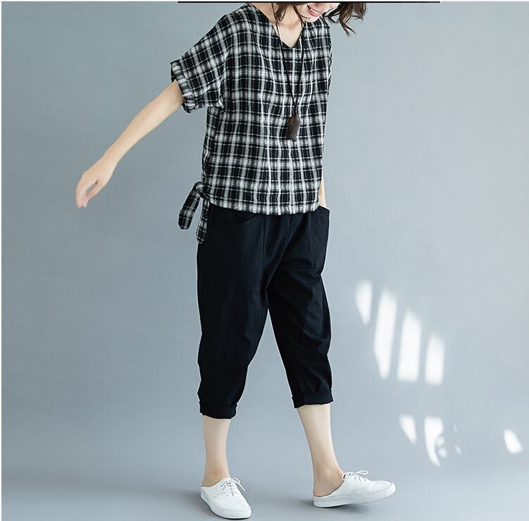 半袖シャツ Tシャツ チェック柄 キュート Vネック 楽ちんコーデ ゆったり ゆるシルエット レディースファッション トレンド 夏 シンプル カジュアル 大人かわいい 821