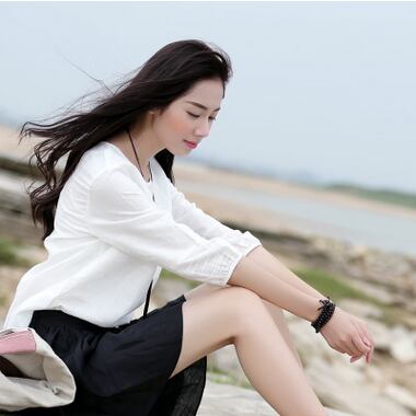 シャツ 清楚系 ラウンドネック ナチュラル フリル 5分袖シャツ 無地 レディースファッション トレンド 夏 シンプル カジュアル 大人かわいい 822