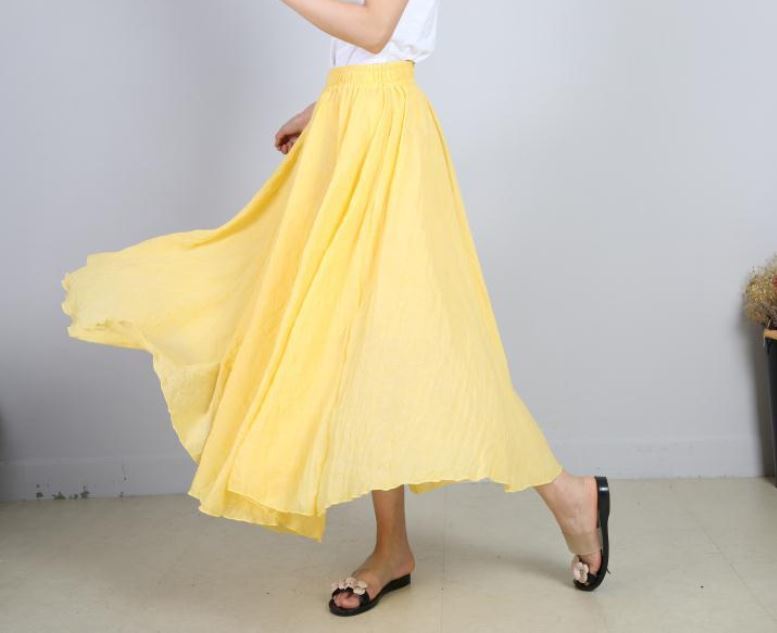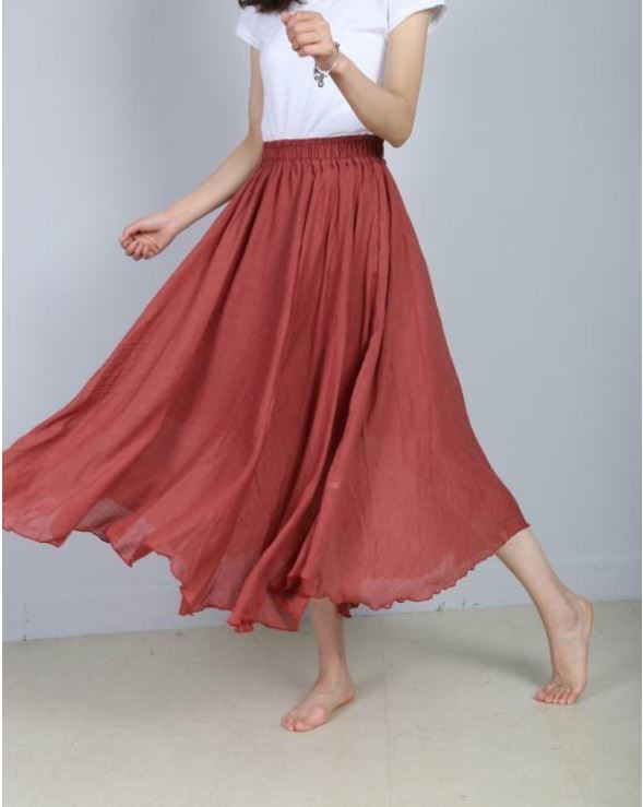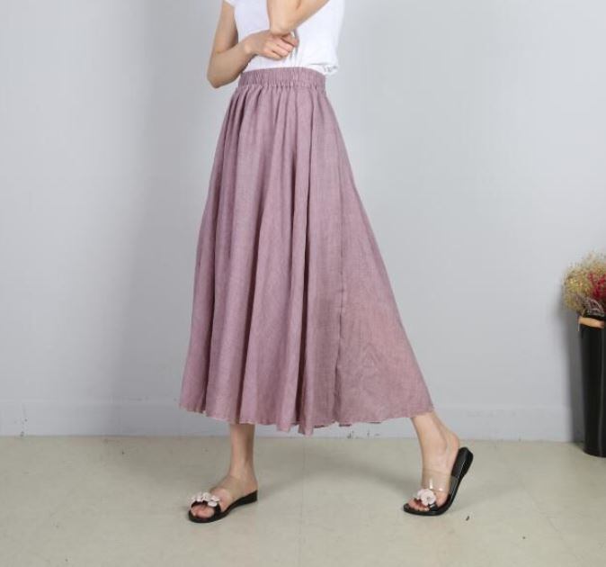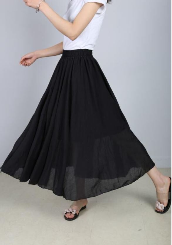 フレアスカート マキシ丈 ゆったり ゆるシルエット オーバーサイズ らくちん 綿 リネン ウエストゴム レディースファッション 大人かわいい シンプル レトロ カジュアル 夏秋 大人上品 531