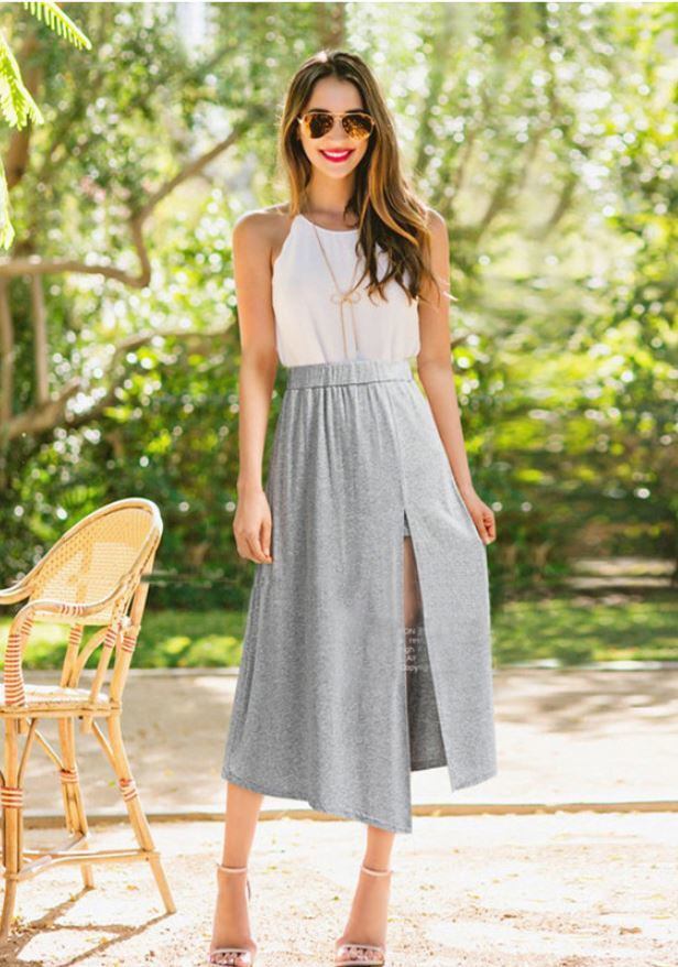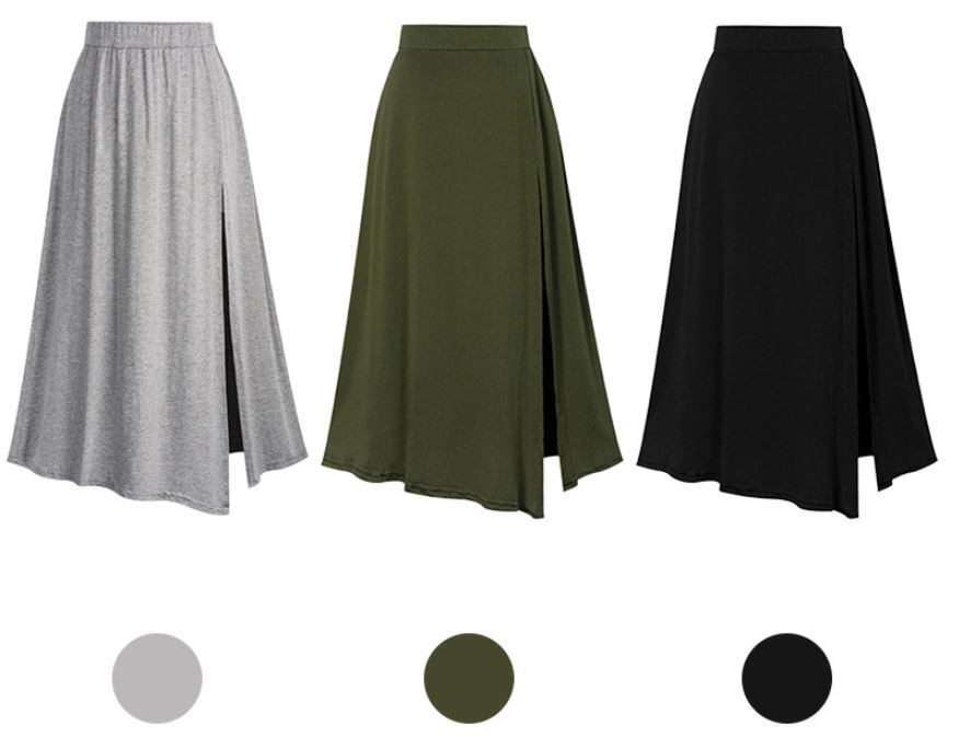 ロング ニットスカート 欧米風 ハイウエスト ウエストゴム サイドスリット マキシ丈 無地 レディースファッション 大人かわいい シンプル レトロ カジュアル 夏秋 大人上品 532