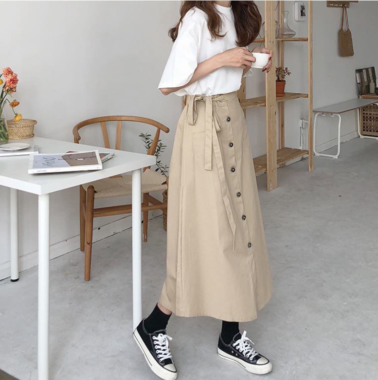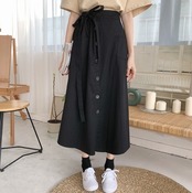 ロングスカート ハイウエストリボン ストラップ ボタン付き マキシ丈 レディースファッション 大人かわいい シンプル レトロ カジュアル 夏秋 大人上品 539