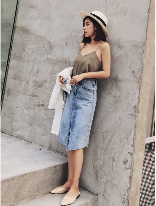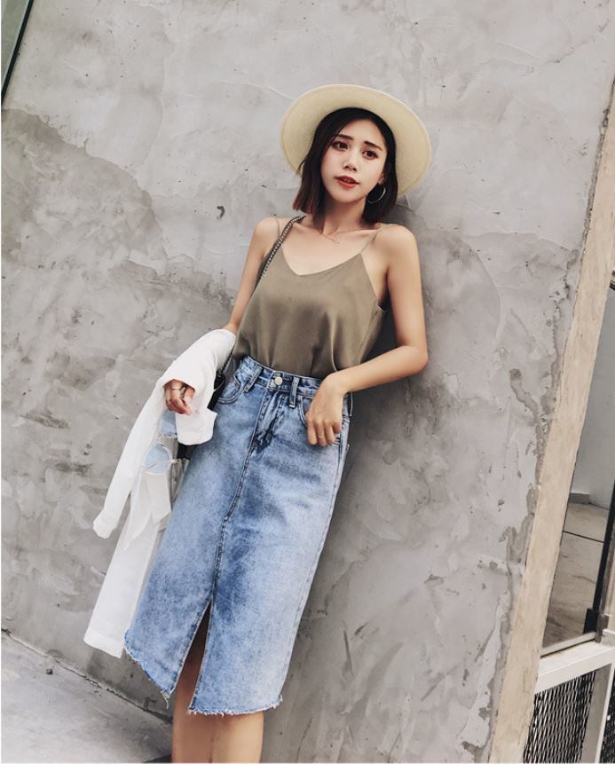 デニム Aラインスカート ミモレ丈 ハイウエスト レディースファッション 大人かわいい シンプル レトロ カジュアル 夏秋 大人上品 541
