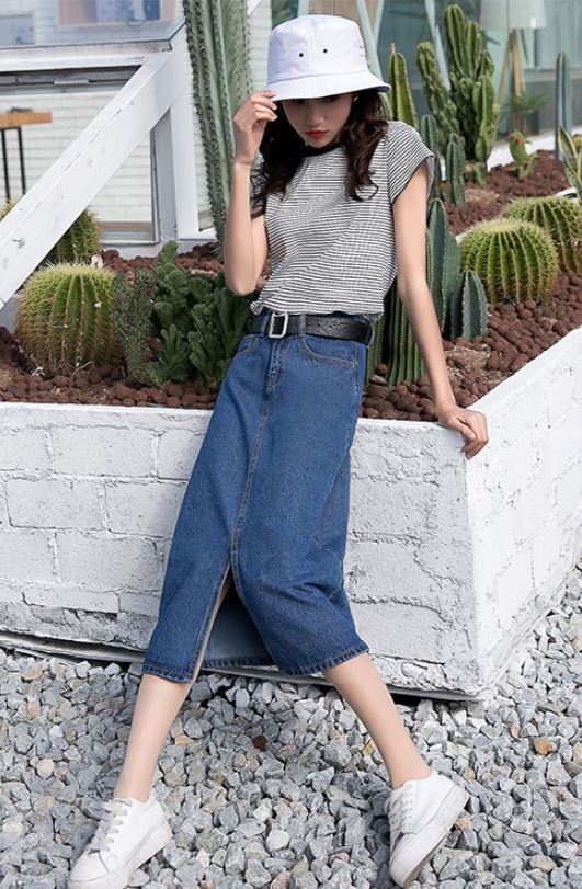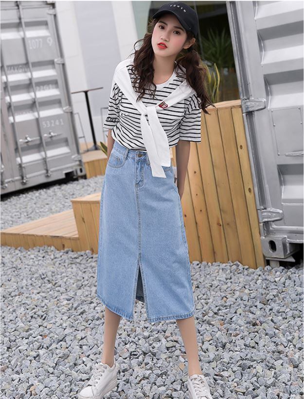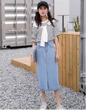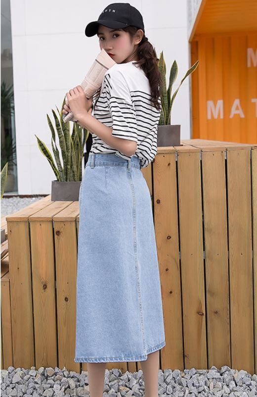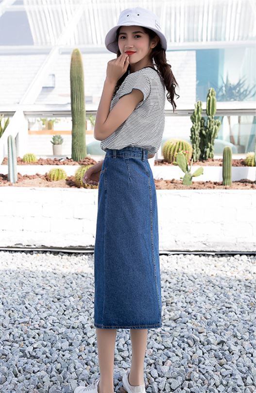 デニム スカート 2018夏 ハーフスカート ハイウエスト ロングスカート 膝丈 レディースファッション 大人かわいい シンプル レトロ カジュアル 夏秋 大人上品 542