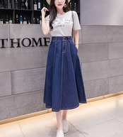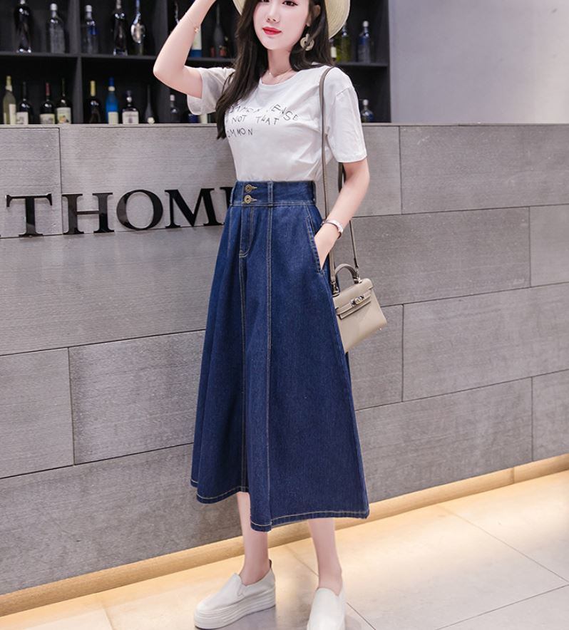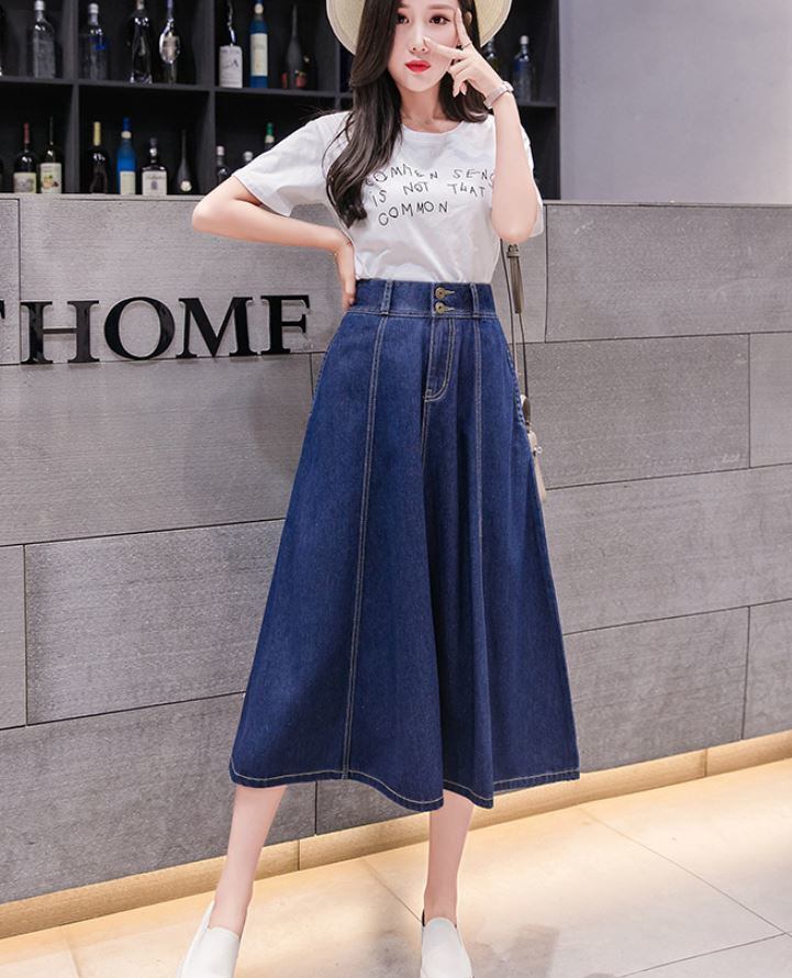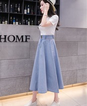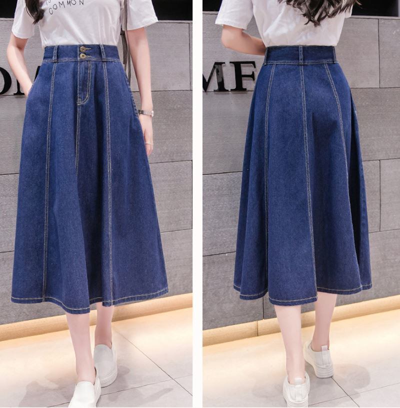 デニム フレア ロングスカート 欧米風 ハイウエスト マキシ丈 膝丈 レディースファッション 大人かわいい シンプル レトロ カジュアル 夏秋 大人上品 543