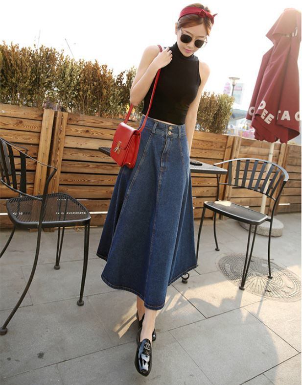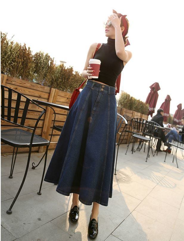 デニム フレアスカート 2018年夏 レトロ ハイウエスト ロングスカート マキシ丈 レディースファッション 大人かわいい シンプル レトロ カジュアル 夏秋 大人上品 544