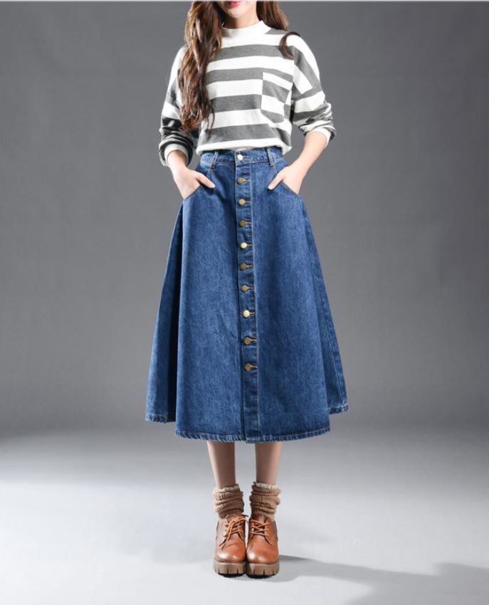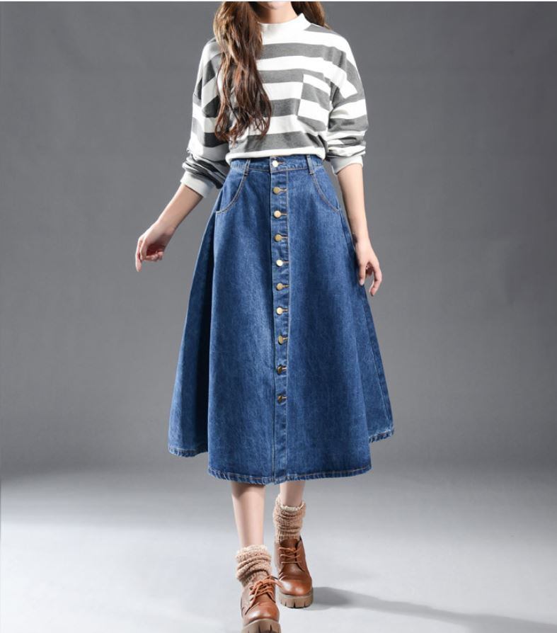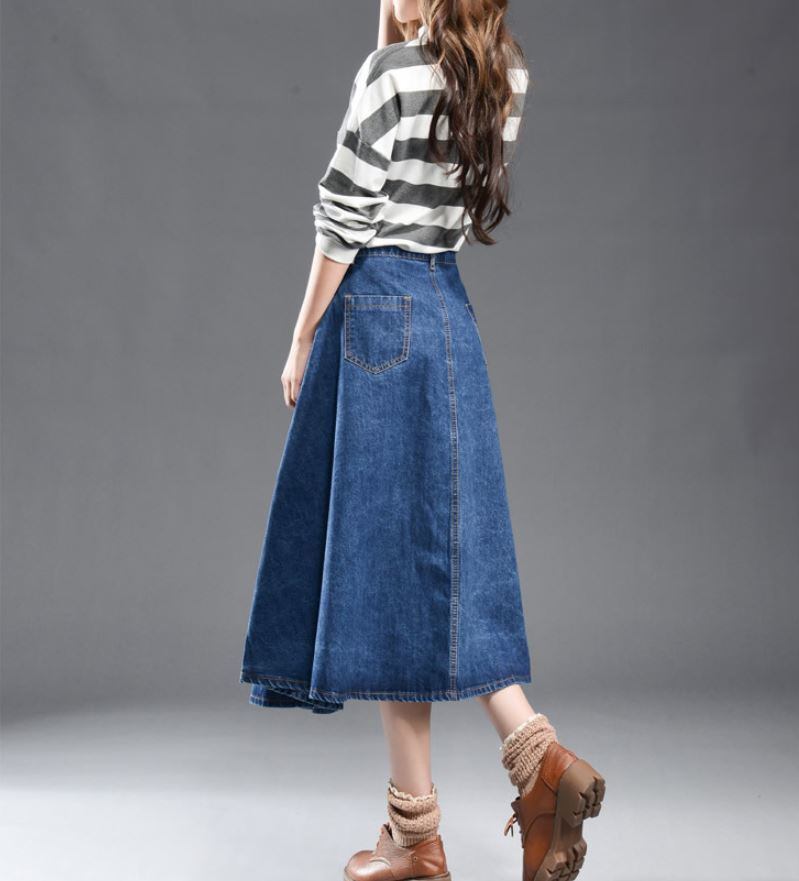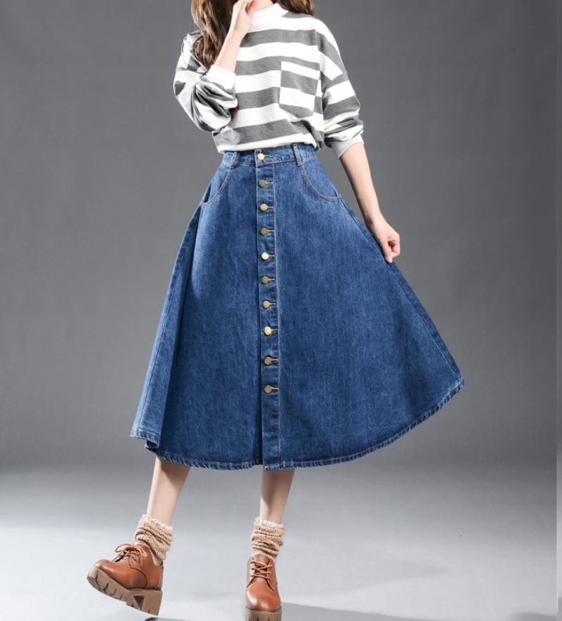 デニム ロングスカート ボタンがアクセントのハイウエスト Aライン レディースファッション 大人かわいい シンプル レトロ カジュアル 夏秋 大人上品 548