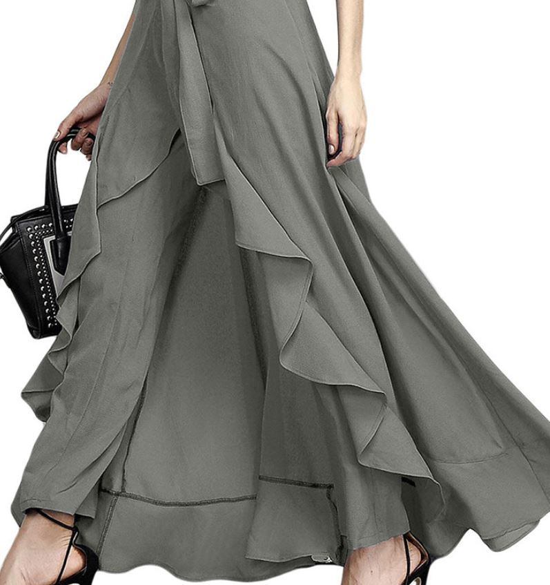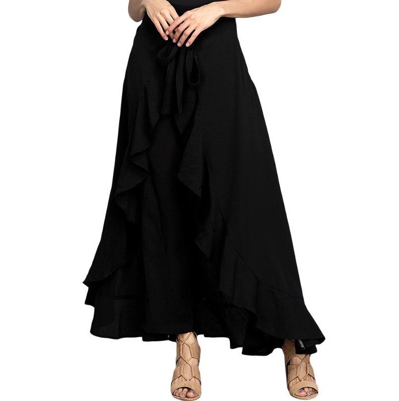 ロングスカート 欧米風ハイウエストプリーツフリル付きルーズ ハイウエストスカート レディースファッション シンプル カジュアル 夏 大人上品 558