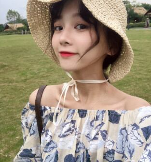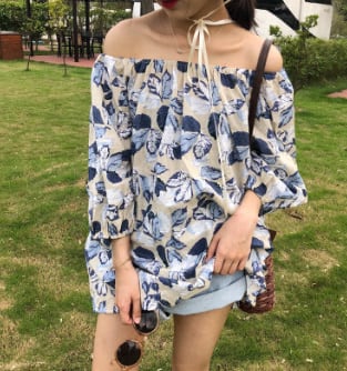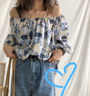 オフショル☆シフォンパフスリーブシャツ/花柄 ブラウス 袖コンシャス エレガント ガーリー 大人かわいい おしゃれ レディースファッション トレンド ゆったり 2018年夏 デート 866