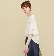ダブルフレア☆半袖ゆるっとシャツ/ボートネック 無地 ゆったり らくちん 五分袖 半袖 ブラウス トップス レディースファッション トレンド 2018年夏秋 ガーリー シンプル 大人かわいい お出かけ デート 872
