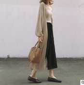 シルクライトロングカーディガン/長袖 ゆったり ゆるシルエット オーバーサイズ らくちん カーディガン ロング レディースファッション トレンド 夏秋 涼しげ 着まわし お出かけ 882