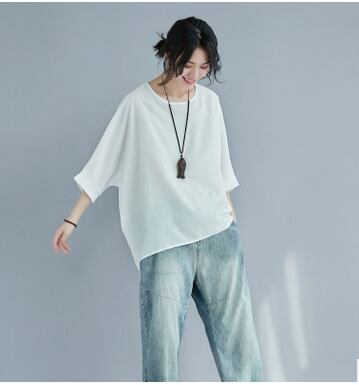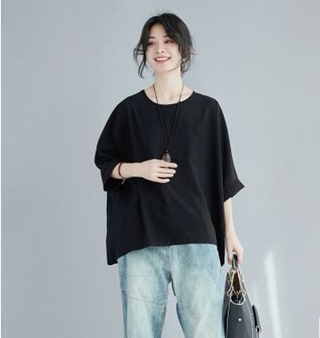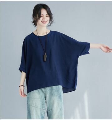 ボートネックくしゅっと5分袖シャツ/無地 レディースファッション ゆったり ゆるシルエット らくちん 夏 カジュアル お出かけ 着まわし 886