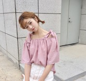 でかリボンショルダー付き オフショルフレア袖ゆったりシャツ/レディースファッション 夏 ガーリー 無地 大人かわいい お出かけ デート 888