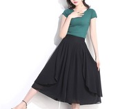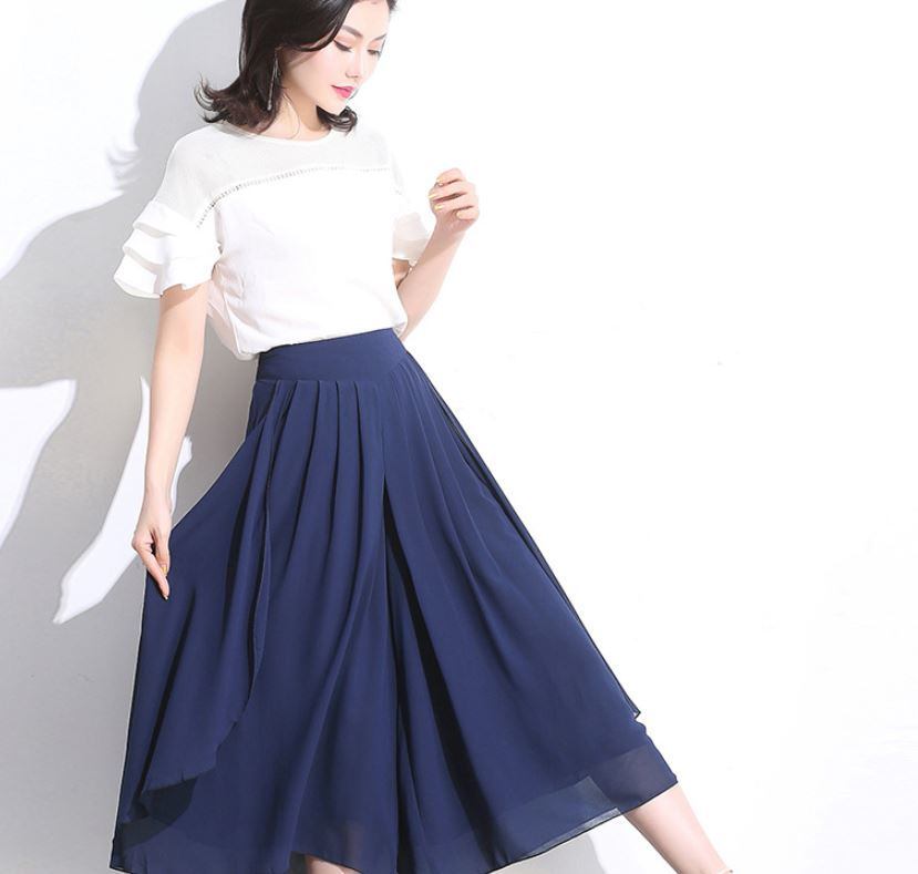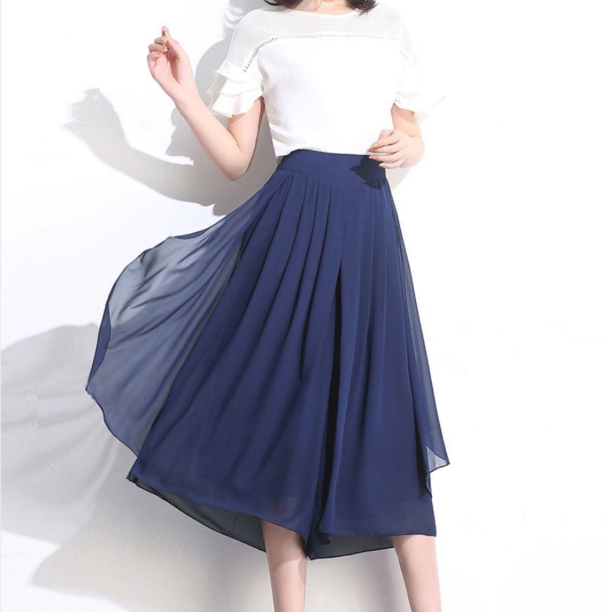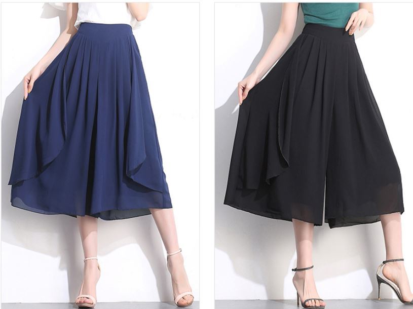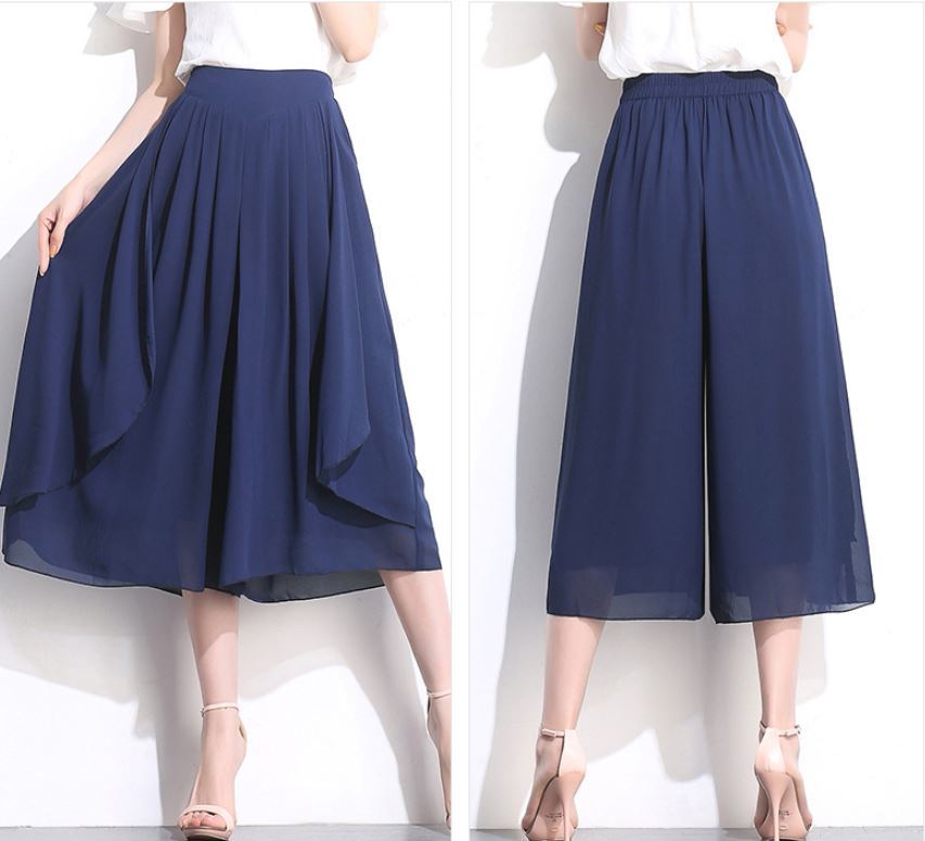 エレガントでシンプルなシフォンクロップドパンツ ハイウエストワイドレッグパンツ 564