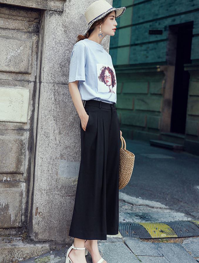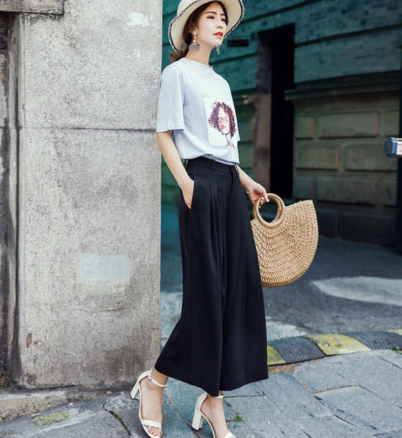 レディース ストレート2タックパンツ ハイウエスト カジュアル ワイドレグパンツ569