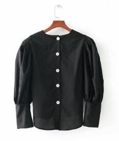 長袖シャツ☆ラウンドネックきれいめトップス/無地 シンプル カジュアル 長袖 フロントボタンボタン レディースファッション トレンド ゆったり らくちん 2018年秋冬 お出かけ 着まわし 1007