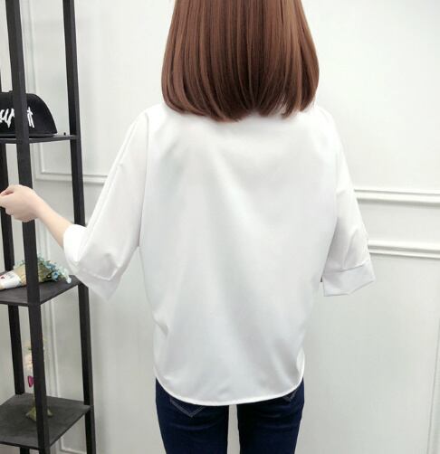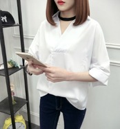 シンプルシャツ☆襟つき キモノVネック七分袖シャツ/無地 カジュアル きれいめ レディースファッション トレンド トップス 2018年夏秋 お出かけ オフィスコーデ 通勤コーデ 1009